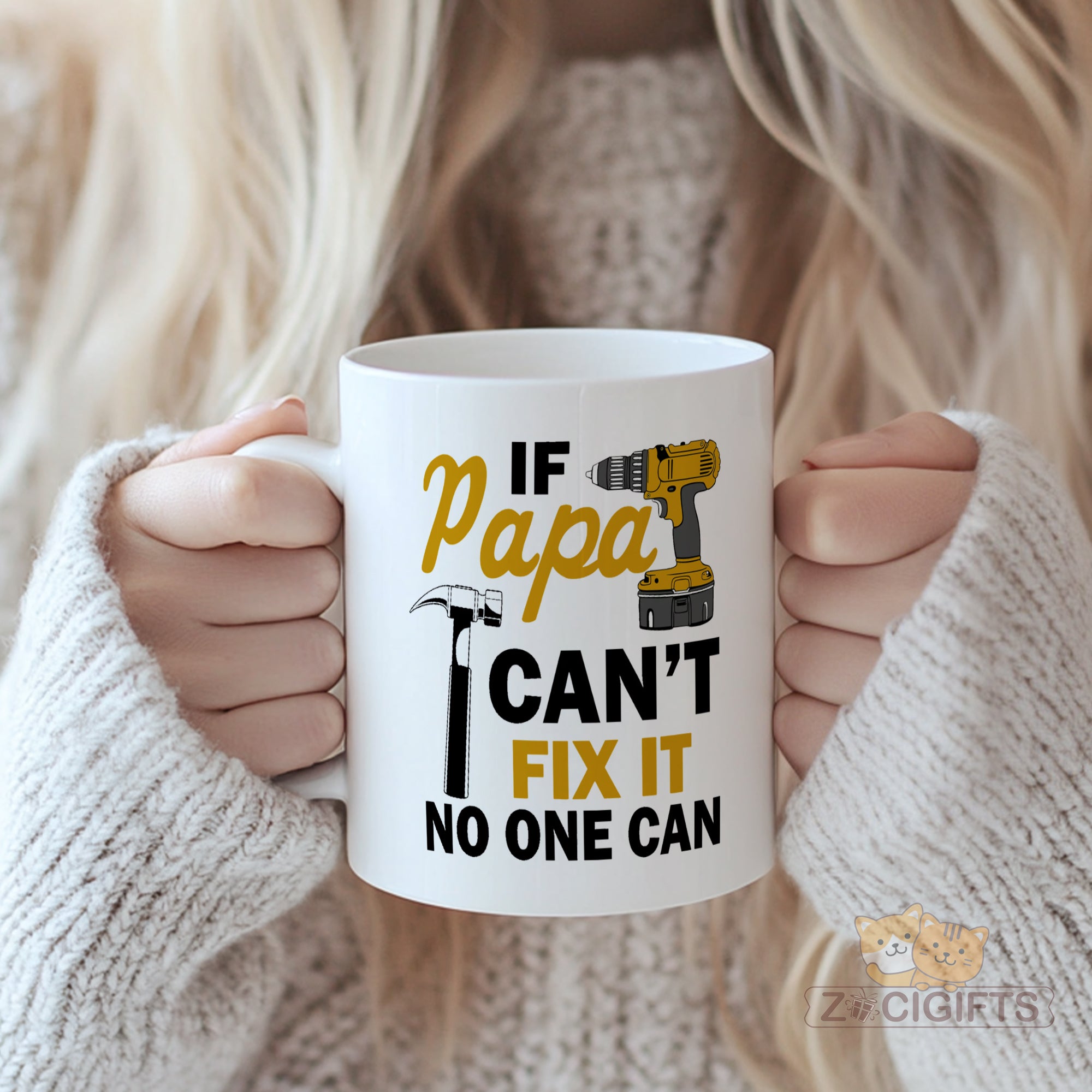 SEO Keywords: if papa can't fix it mug, funny dad gift, father's day present, papa coffee cup, handyman mug, tool gift for dad, birthday gift for father, Christmas gift for papa, grandpa mug, DIY gift for men, retirement gift for dad, yellow drill mug, hammer and drill design, ZIGIFTS, humorous father gift, practical dad present, best seller dad mug, gifts for handyman, office secret santa gift, sentimental father gift