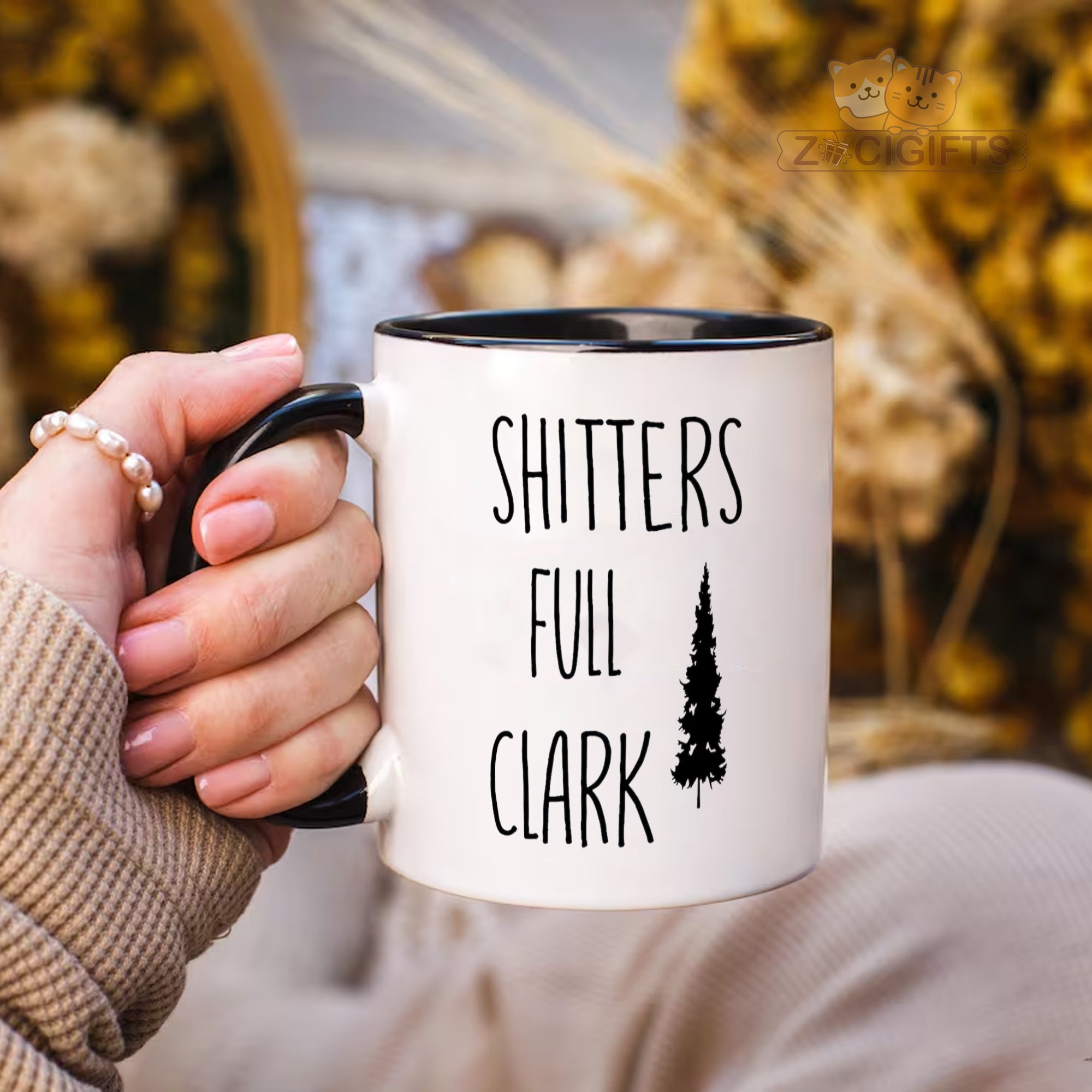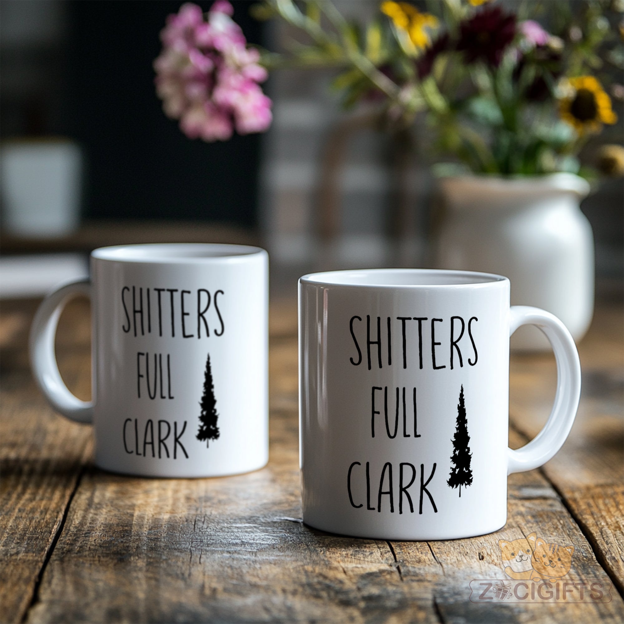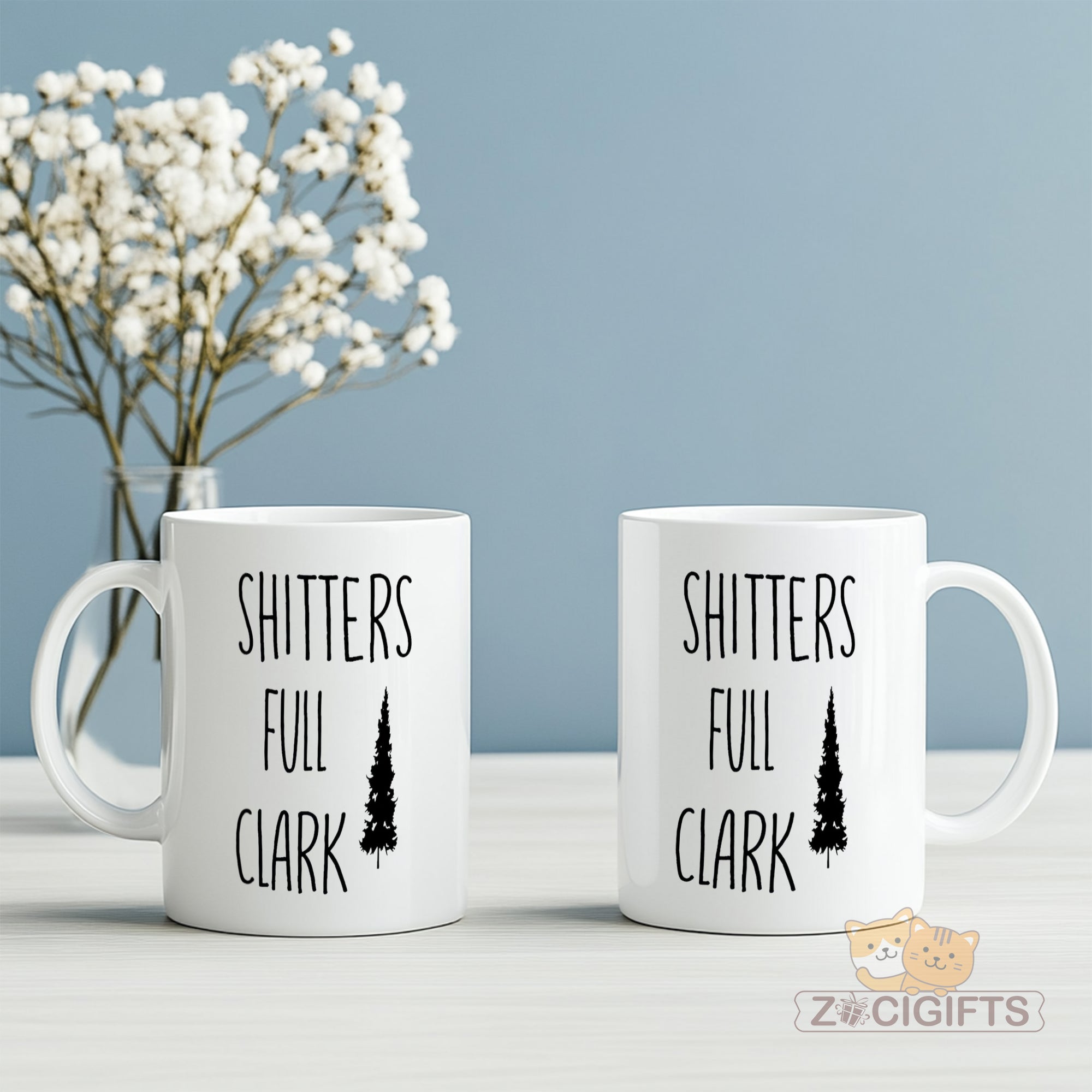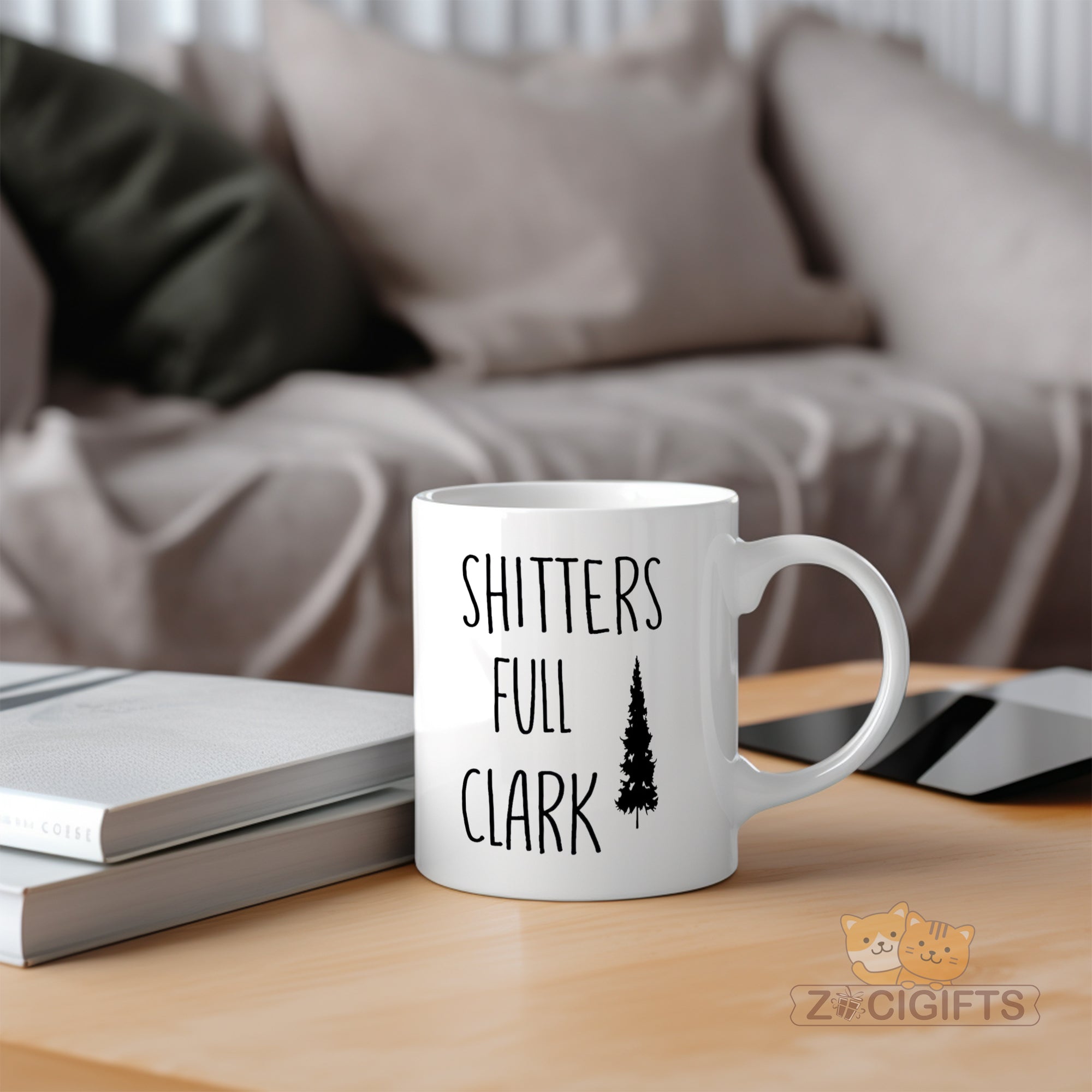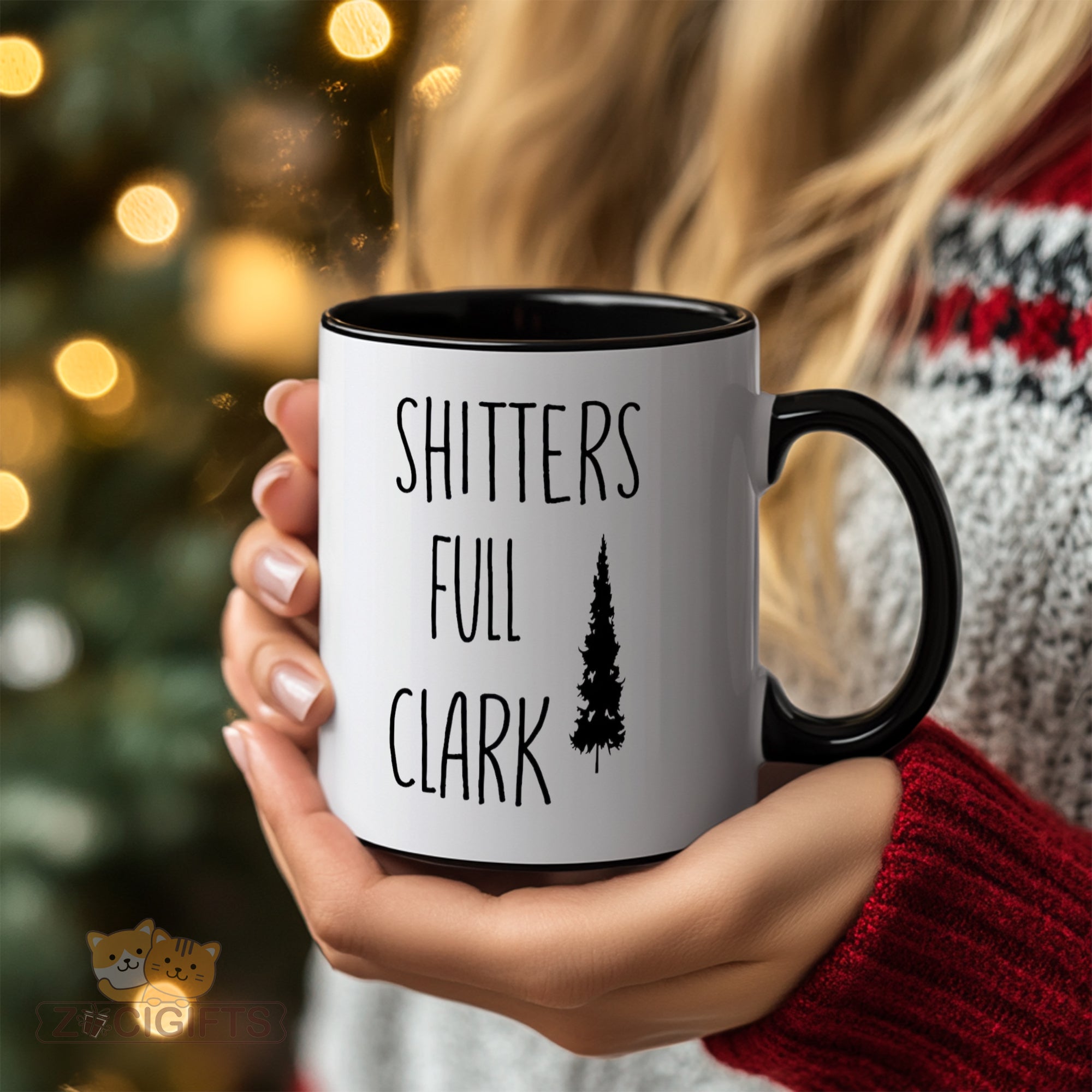 Unleash the legendary quote from the classic holiday film National Lampoon's Christmas Vacation! This iconic "Shitters Full Clark" mug is more than just drinkware—it's a nostalgic ticket to laughter and a must-have for any fan of the Griswold family's chaotic Christmas. Featuring the unforgettable line and the simple black pine tree, it’s a perfect blend of subversive humor and holiday spirit.