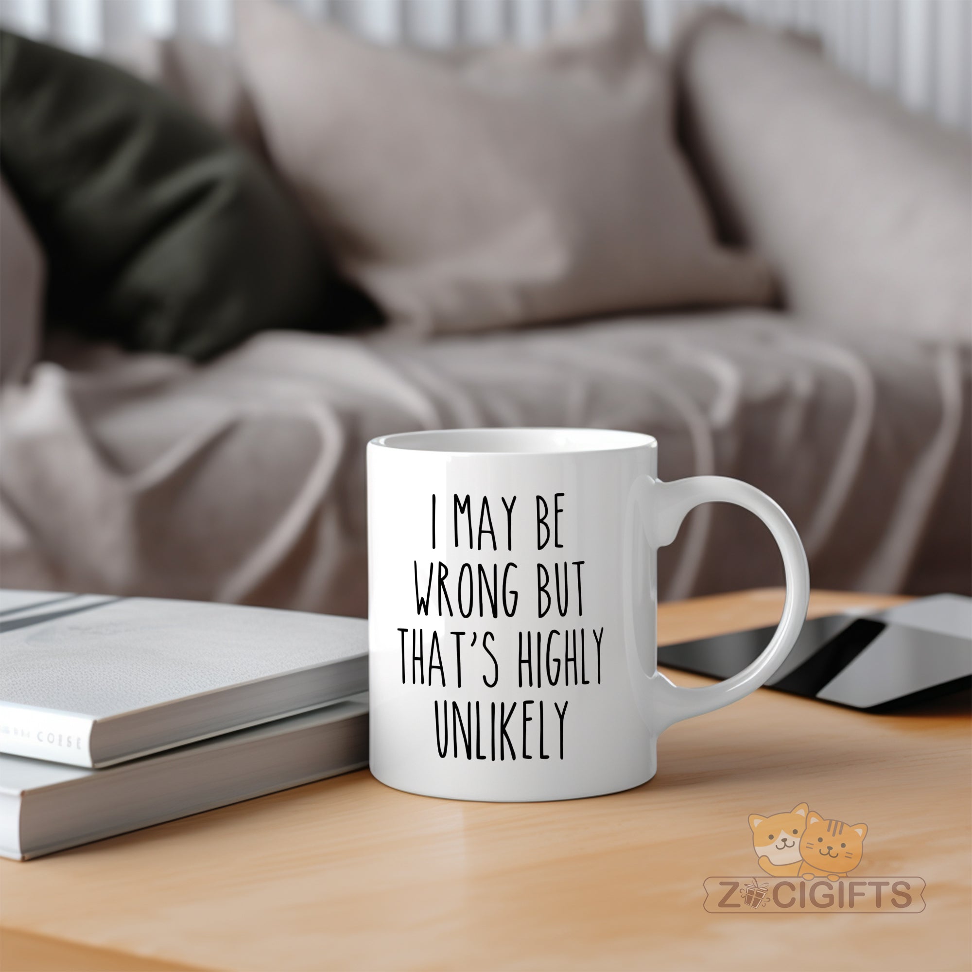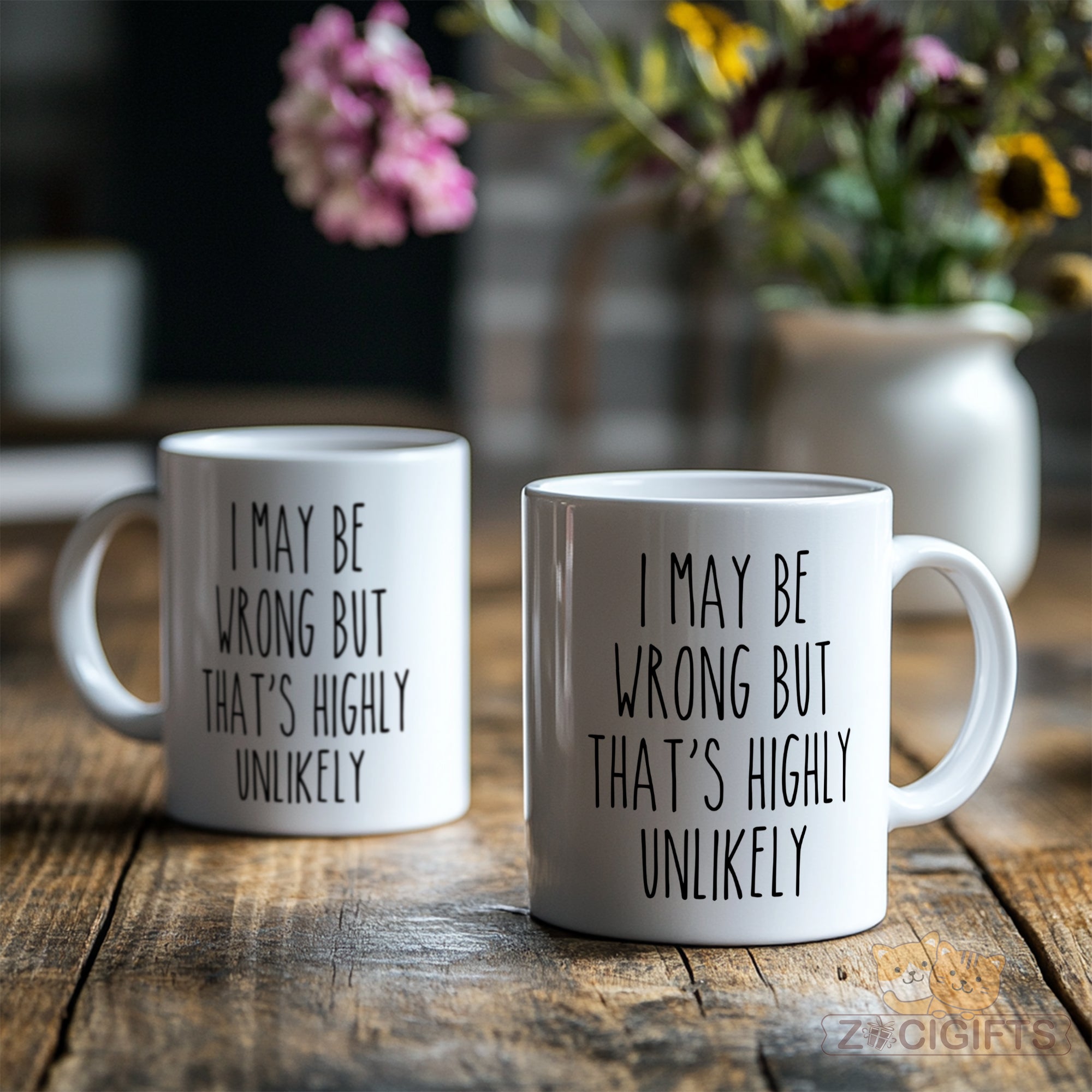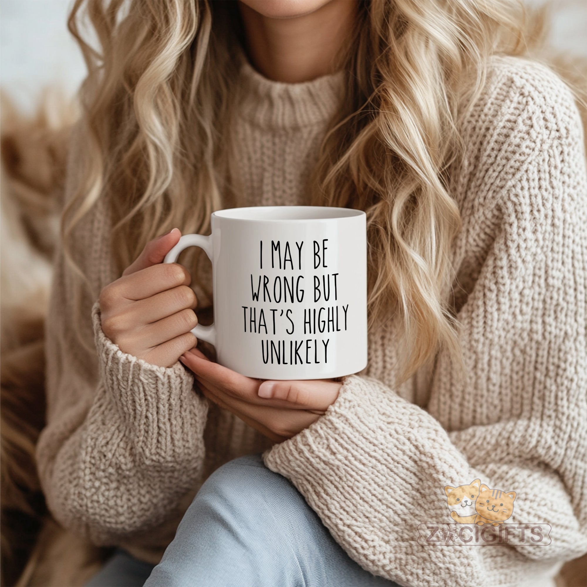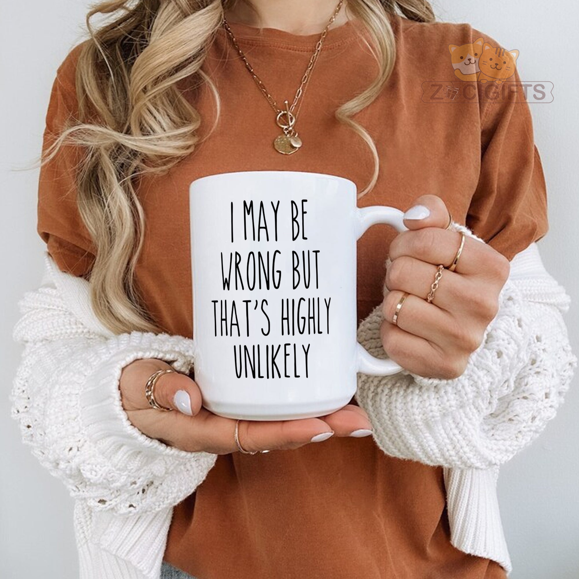 For the person whose confidence is as unshakable as their love for a good cup of coffee. This witty mug boldly states: “I MAY BE WRONG BUT THAT'S HIGHLY UNLIKELY.” It’s the perfect blend of humor, self-assurance, and a touch of playful sarcasm.