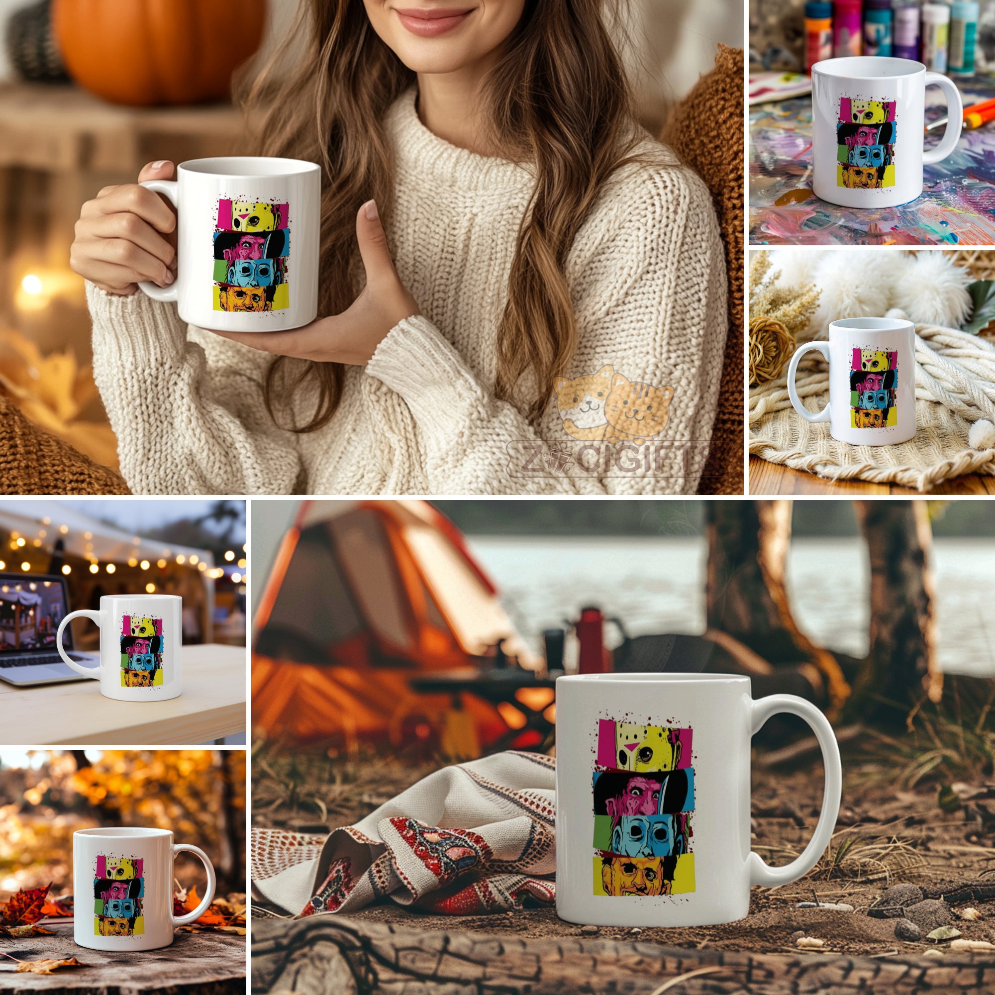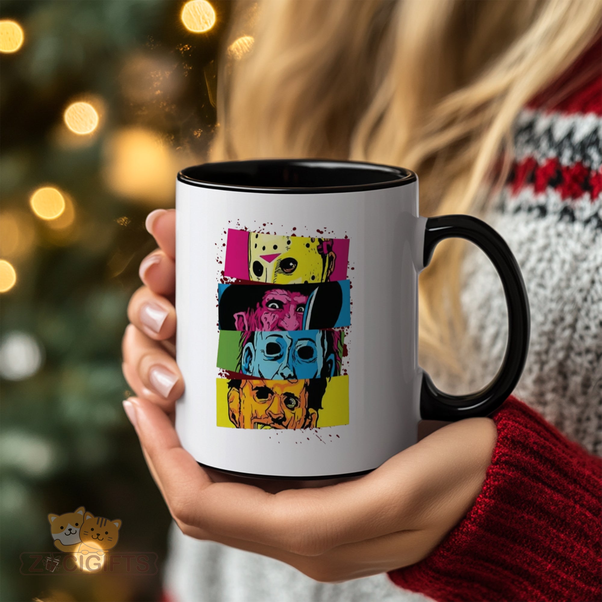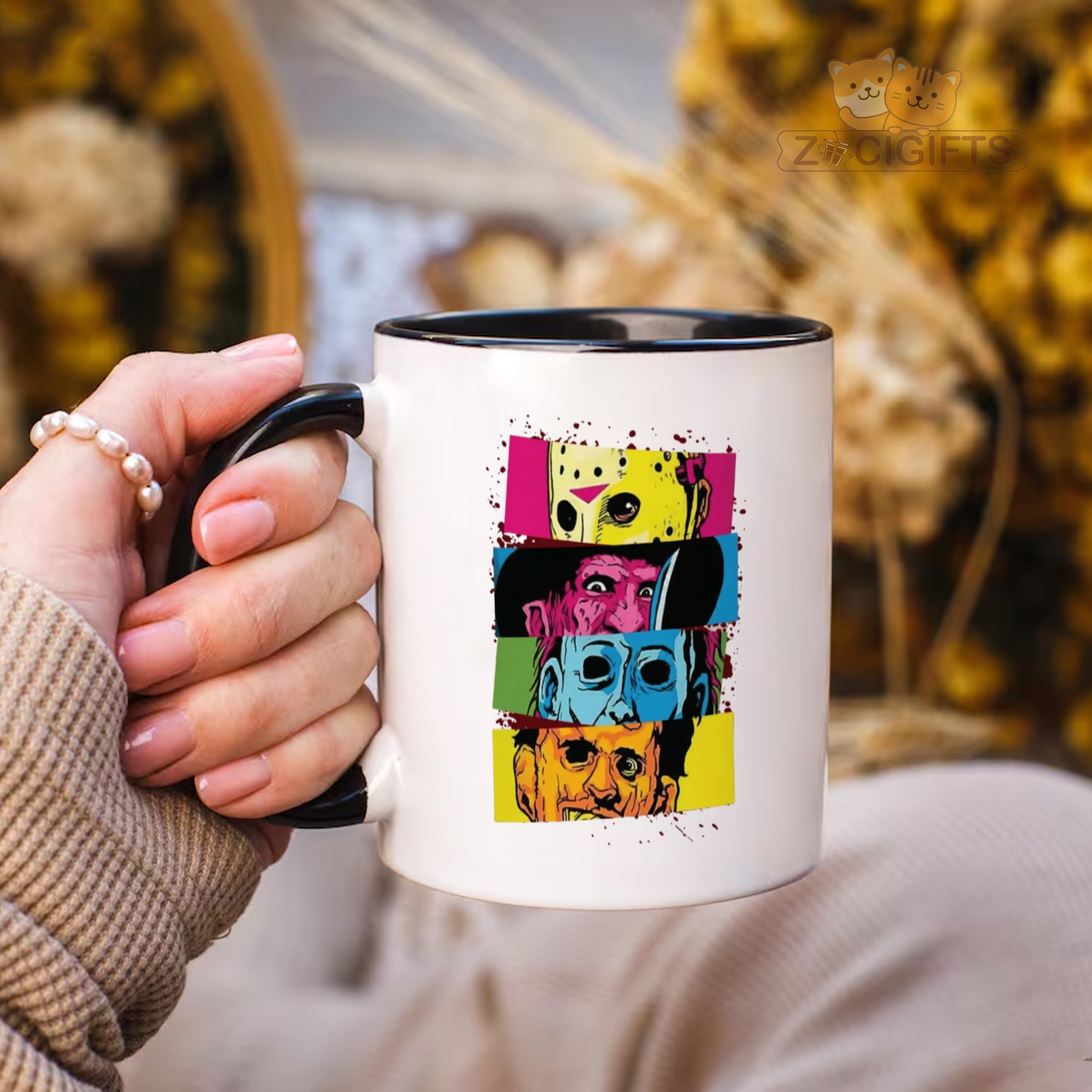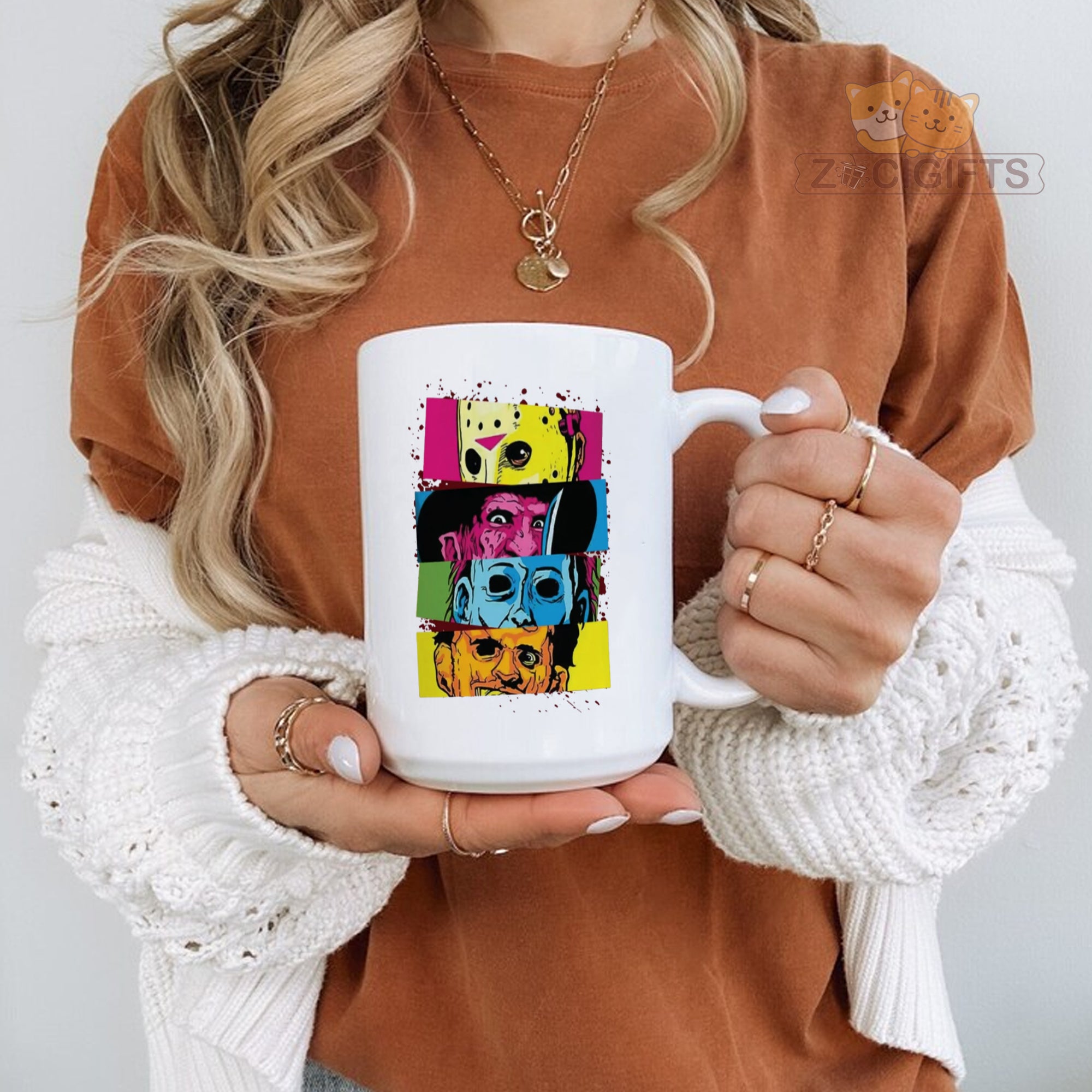 Feast your eyes on this one - of - a - kind ceramic coffee cup that pays homage to some of the most iconic horror movie villains. Each face is rendered in vibrant pop - art style against a contrasting background, making it a true statement piece for your collection.