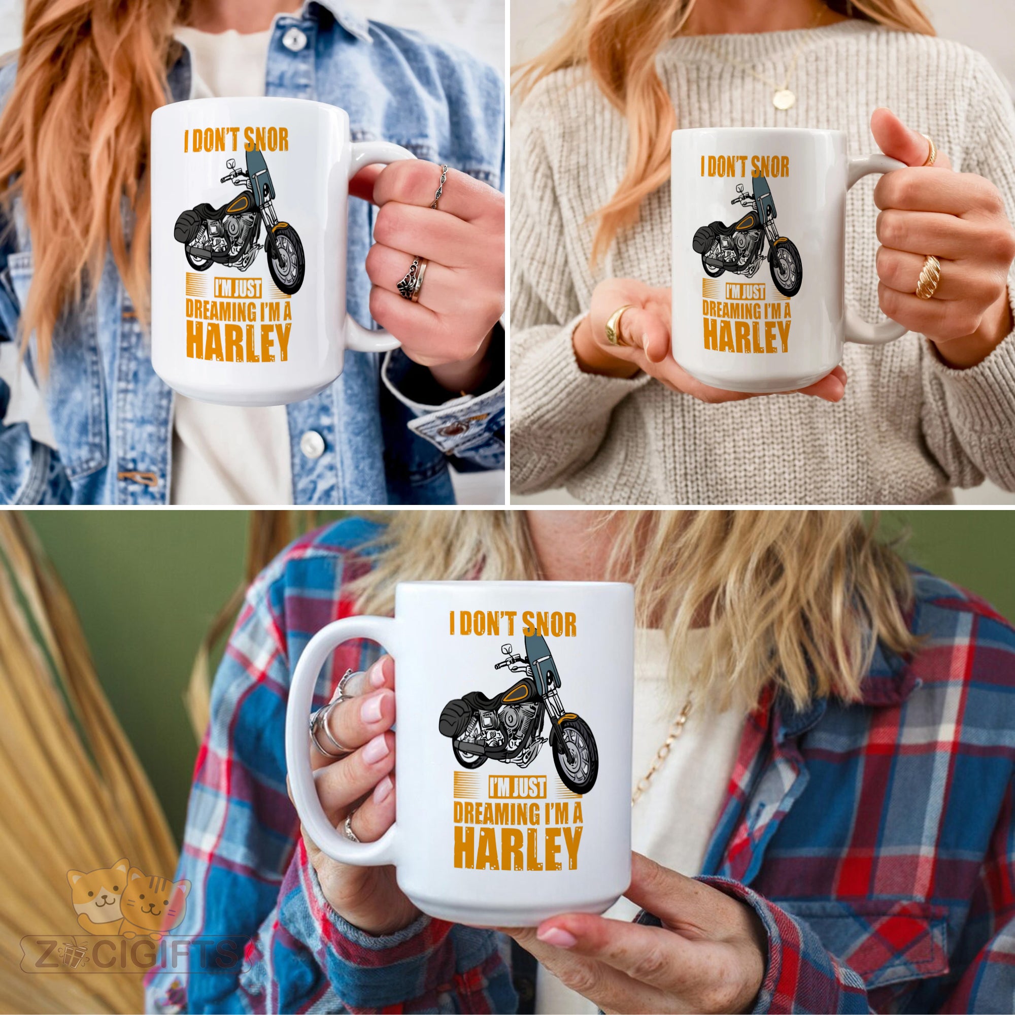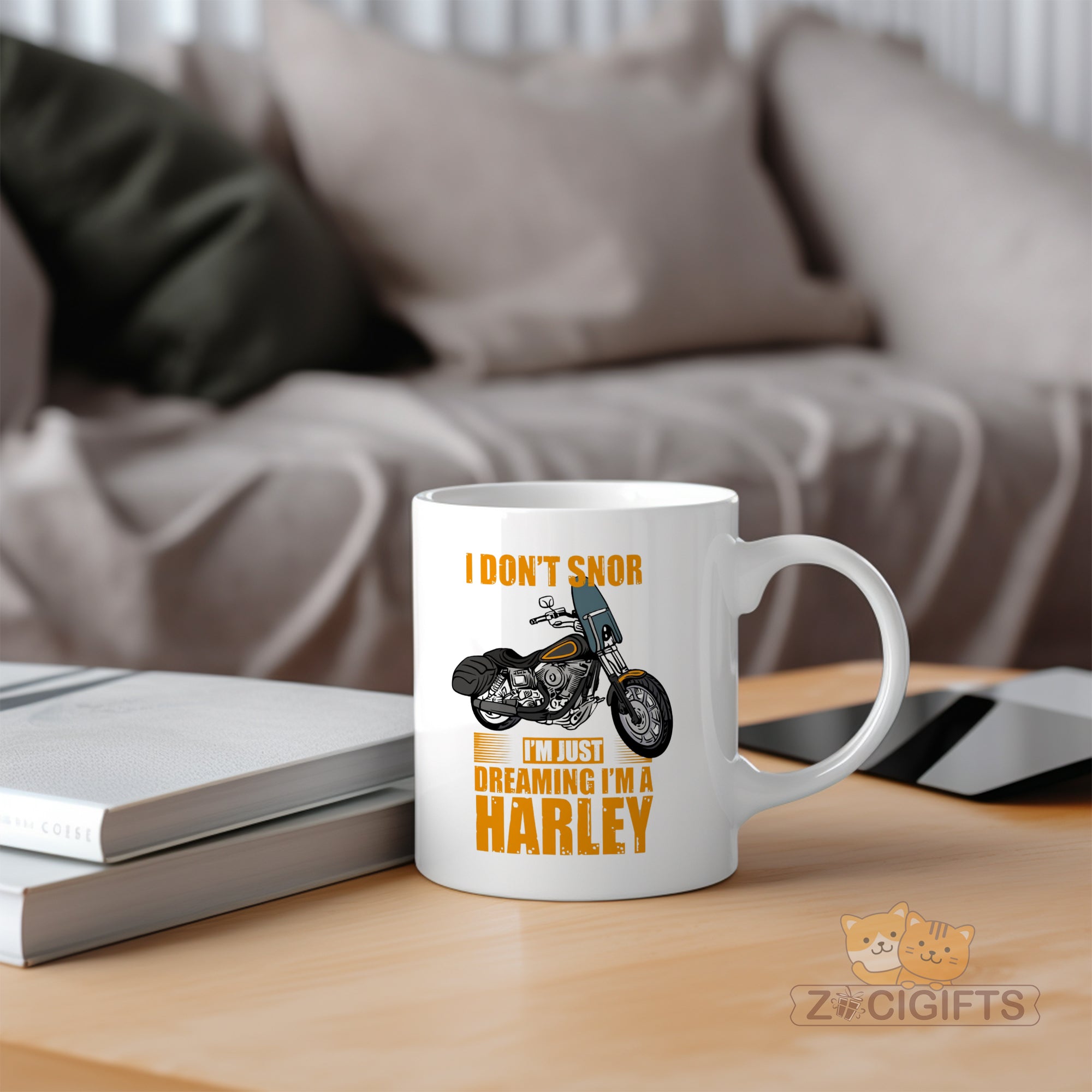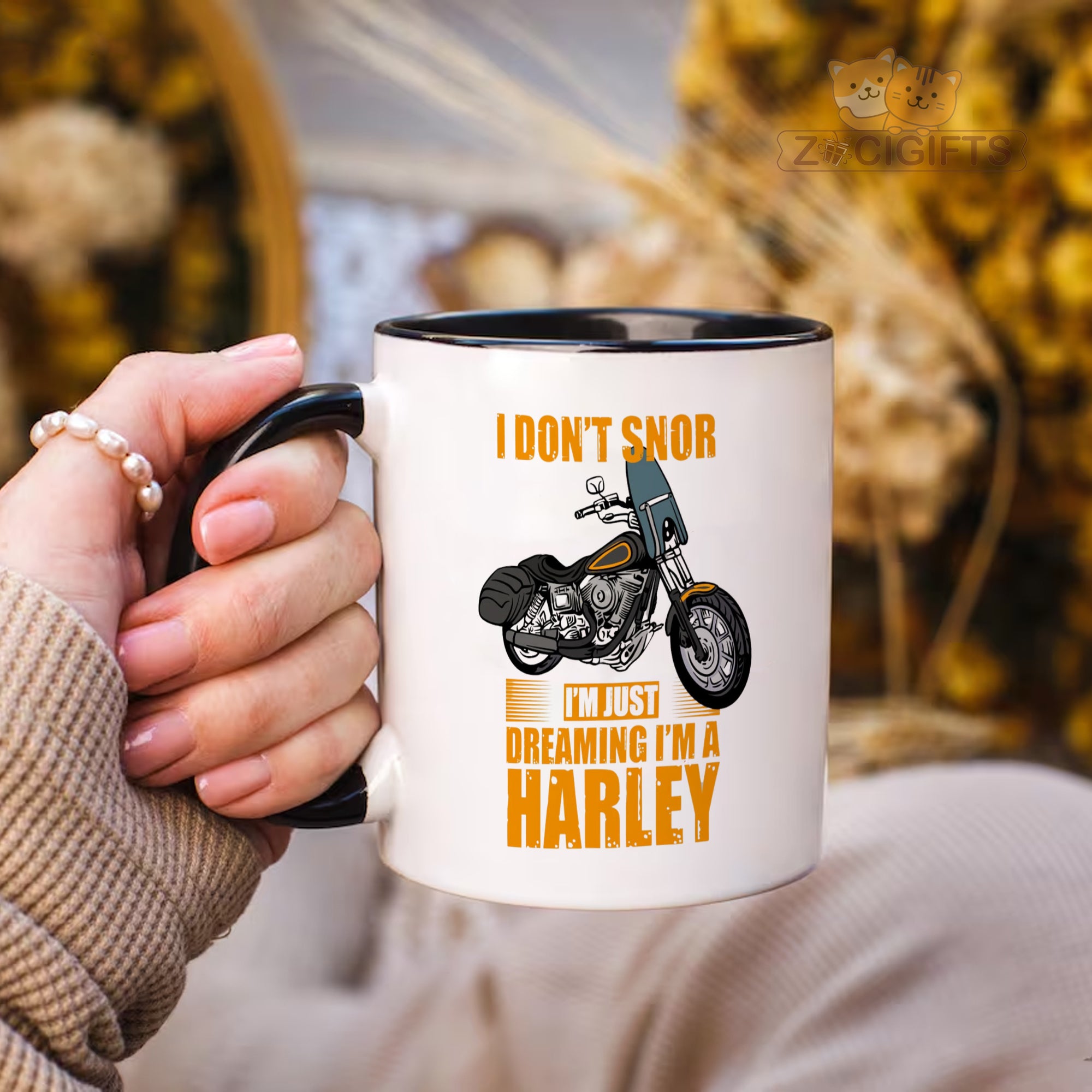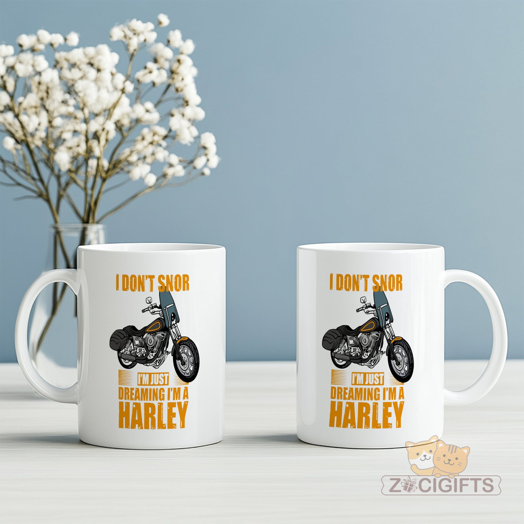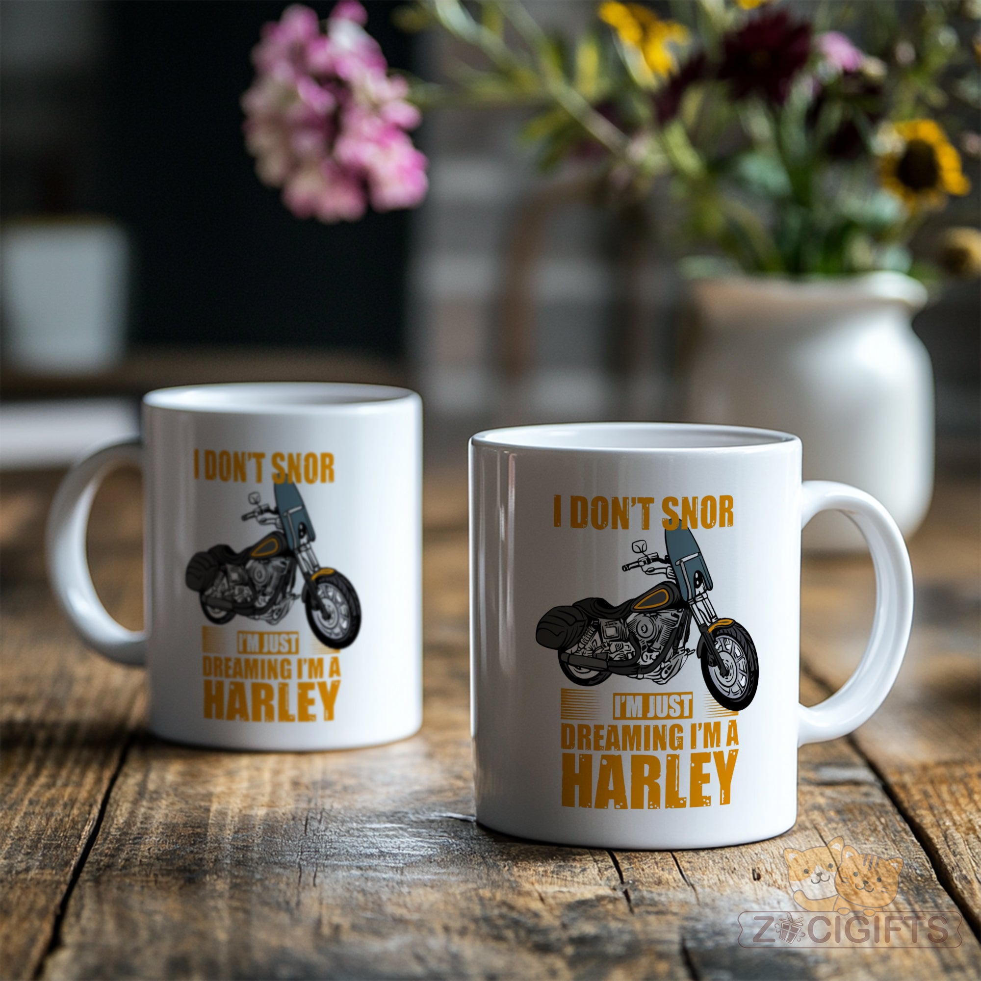 Rev up your mornings with our "I Don't Snore, I'm Just Dreaming I'm a Harley" ceramic mug! Perfect for motorcycle lovers, bikers, and coffee aficionados who ride on the wild side. This bold, eye-catching mug combines humor and style, featuring a vintage-inspired Harley illustration and vibrant typography.