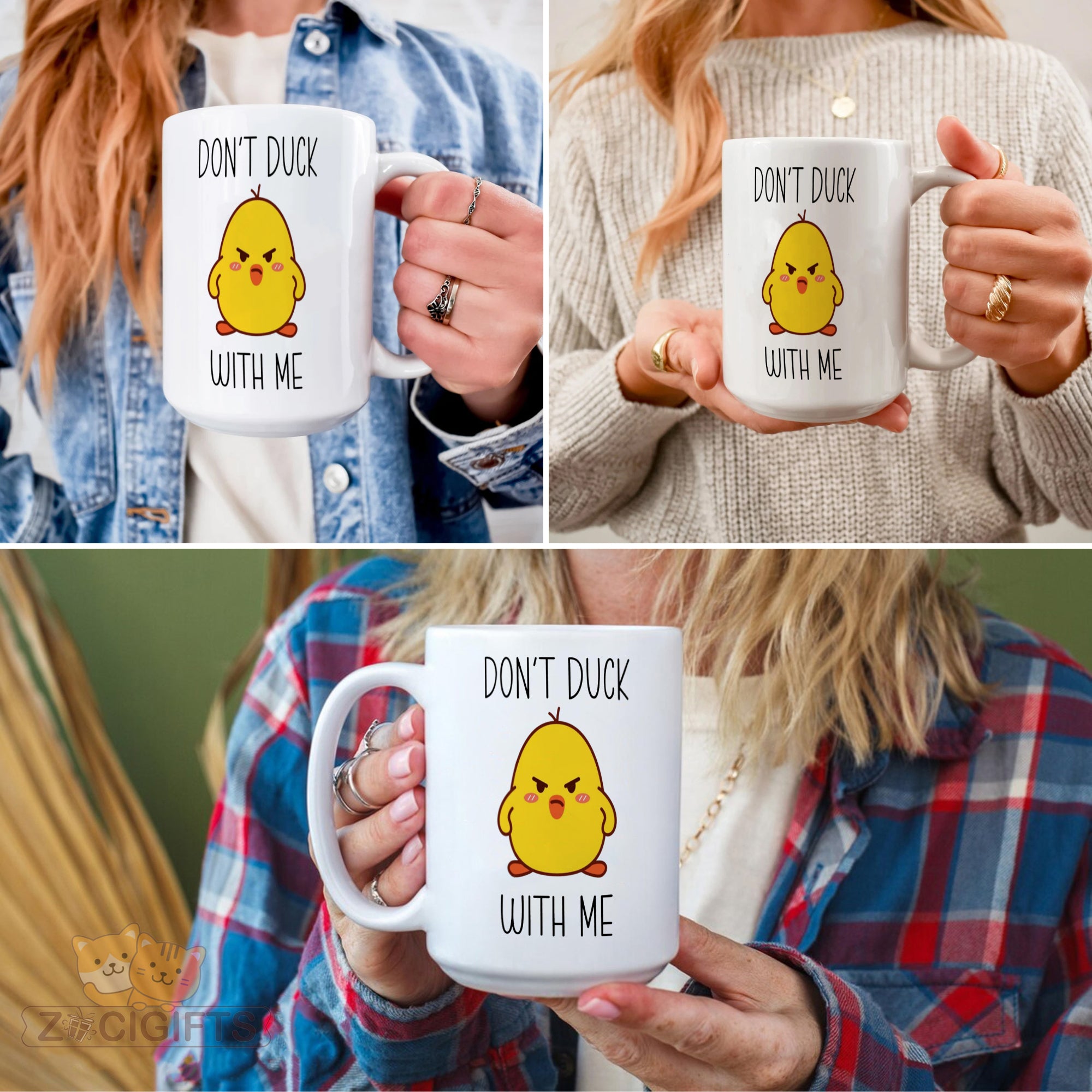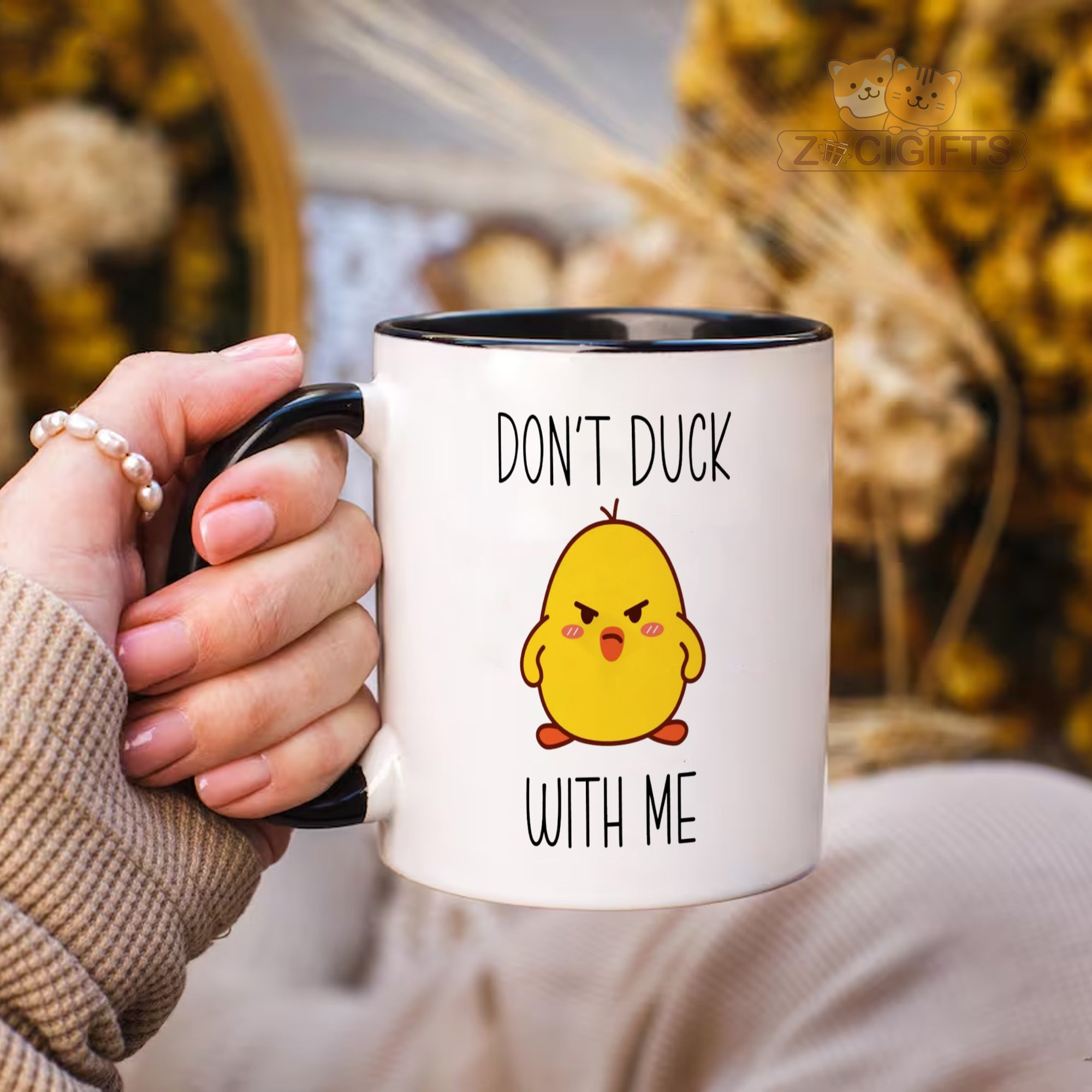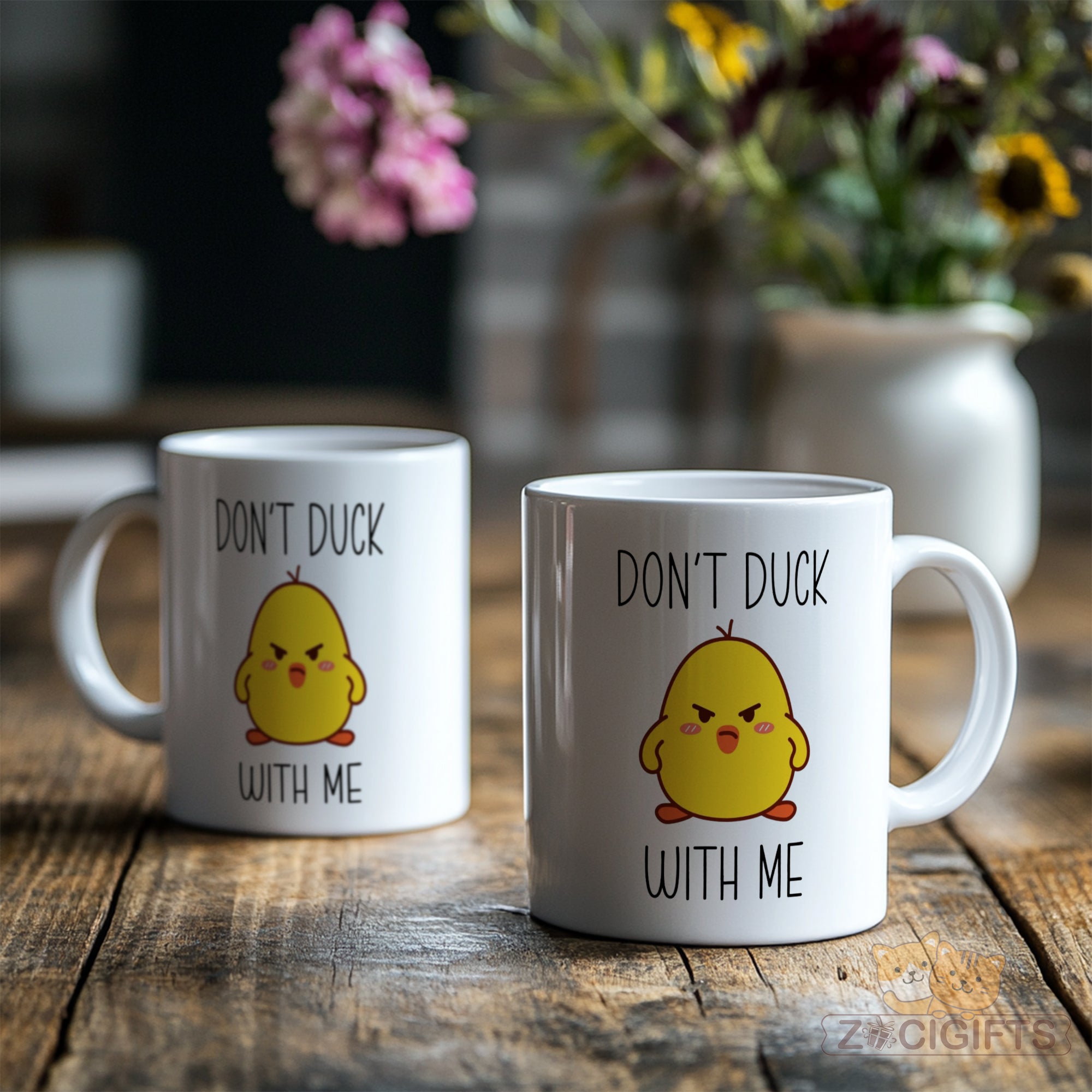 Introducing our hilarious "Don't Duck With Me" novelty mug! This white ceramic mug is not just your ordinary drinking vessel; it's a statement piece that's sure to bring a smile to your face and spark conversations. The mug features a cute, angry - looking yellow duck graphic paired with the bold, black text "DON'T DUCK WITH ME". Whether you're sipping your morning coffee, enjoying an afternoon tea, or need a fun addition to your office desk, this mug is the perfect companion. It makes for an ideal gift for friends who have a great sense of humor. Surprise them on their birthday, holidays, or just because! It's also a great way to add some office humor and liven up the work environment. Made from high - quality ceramic, this mug is durable and dishwasher safe for easy cleaning. Its large capacity ensures you can enjoy your favorite beverages in comfort. Don't miss out on adding this unique and entertaining mug to your collection today!