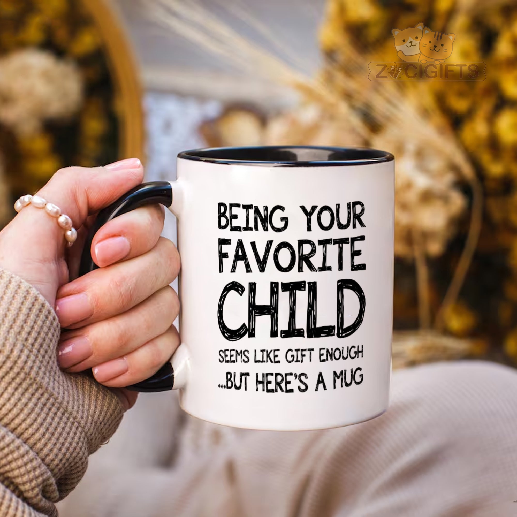 Introducing our charming "Favorite Child" mug, the perfect blend of humor and sentimentality! This high - quality ceramic mug is not just a vessel for your favorite hot beverages like coffee or tea; it's a statement piece that brings a smile to your face every time you use it. The playful text on the mug, "Being your favorite child seems like gift enough...but here's a mug", is sure to add a touch of lightheartedness to your daily routine. Whether you're sipping your morning coffee in North America or enjoying a relaxing cup of tea in Europe, this mug will be your trusty companion. It makes for an ideal gift for kids who love to feel special, as well as adults who appreciate a good laugh. The smooth finish and comfortable handle ensure a pleasant drinking experience. The durable ceramic material is built to last, so you can enjoy this mug for years to come. Surprise your loved ones with this unique and fun mug, and make every sip a moment to cherish!