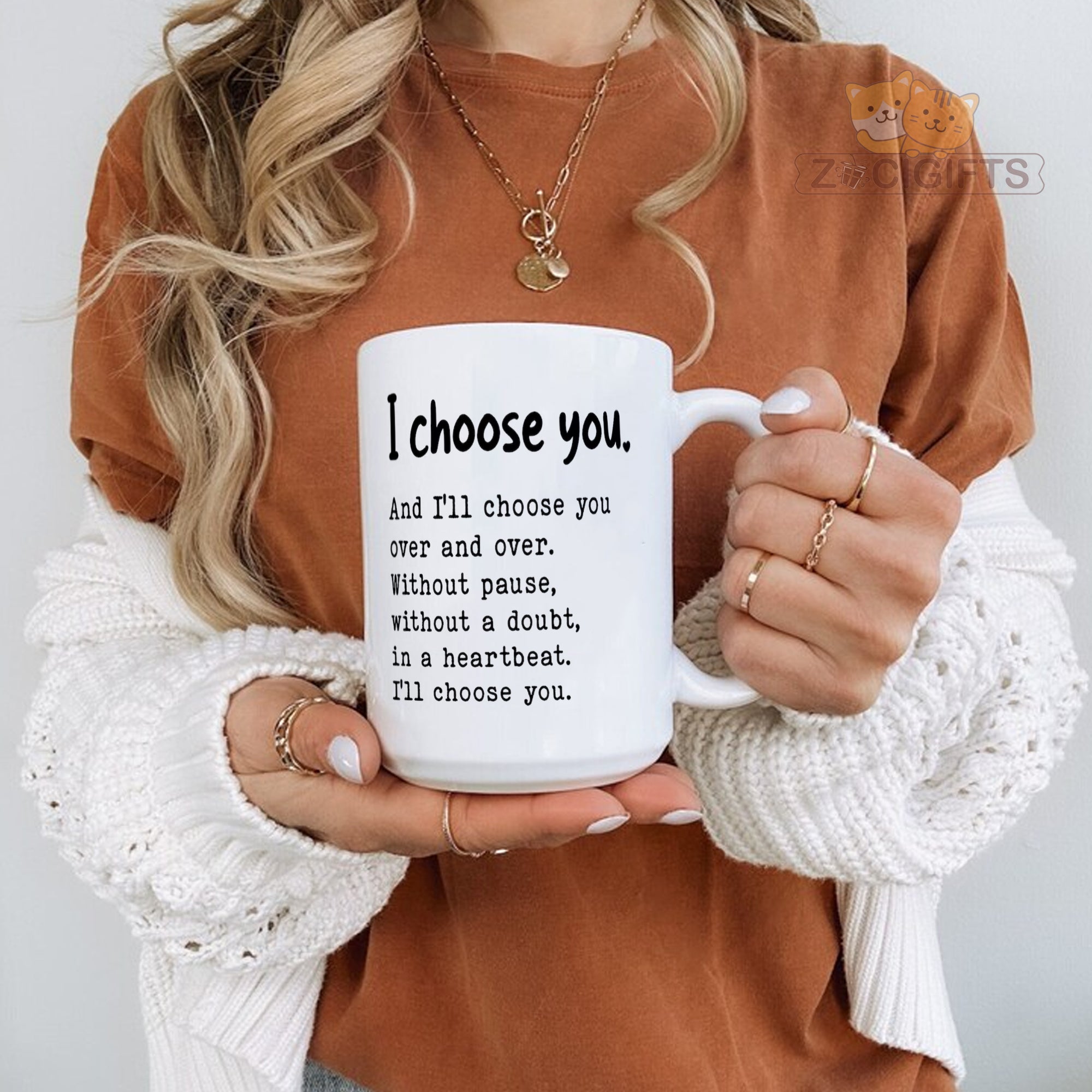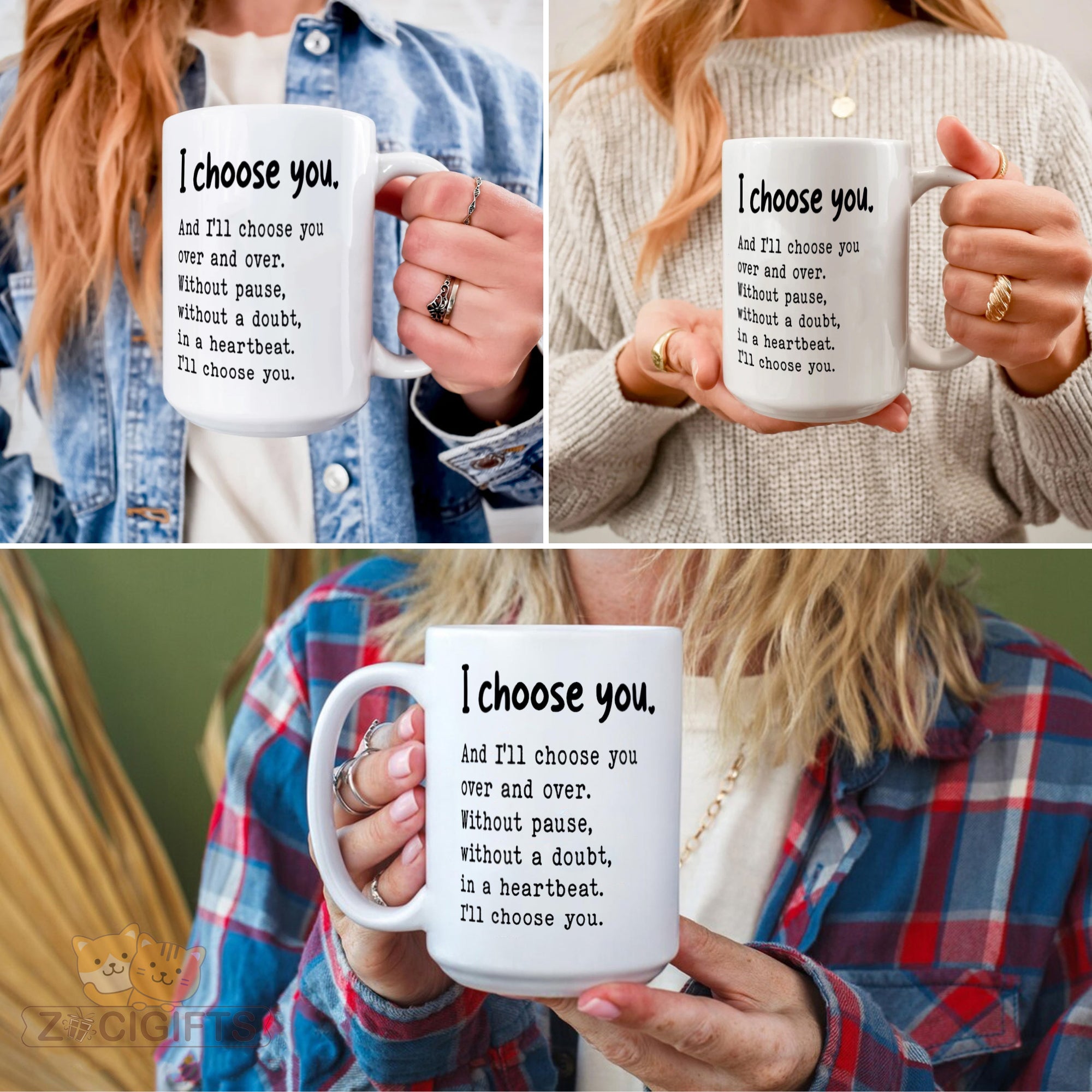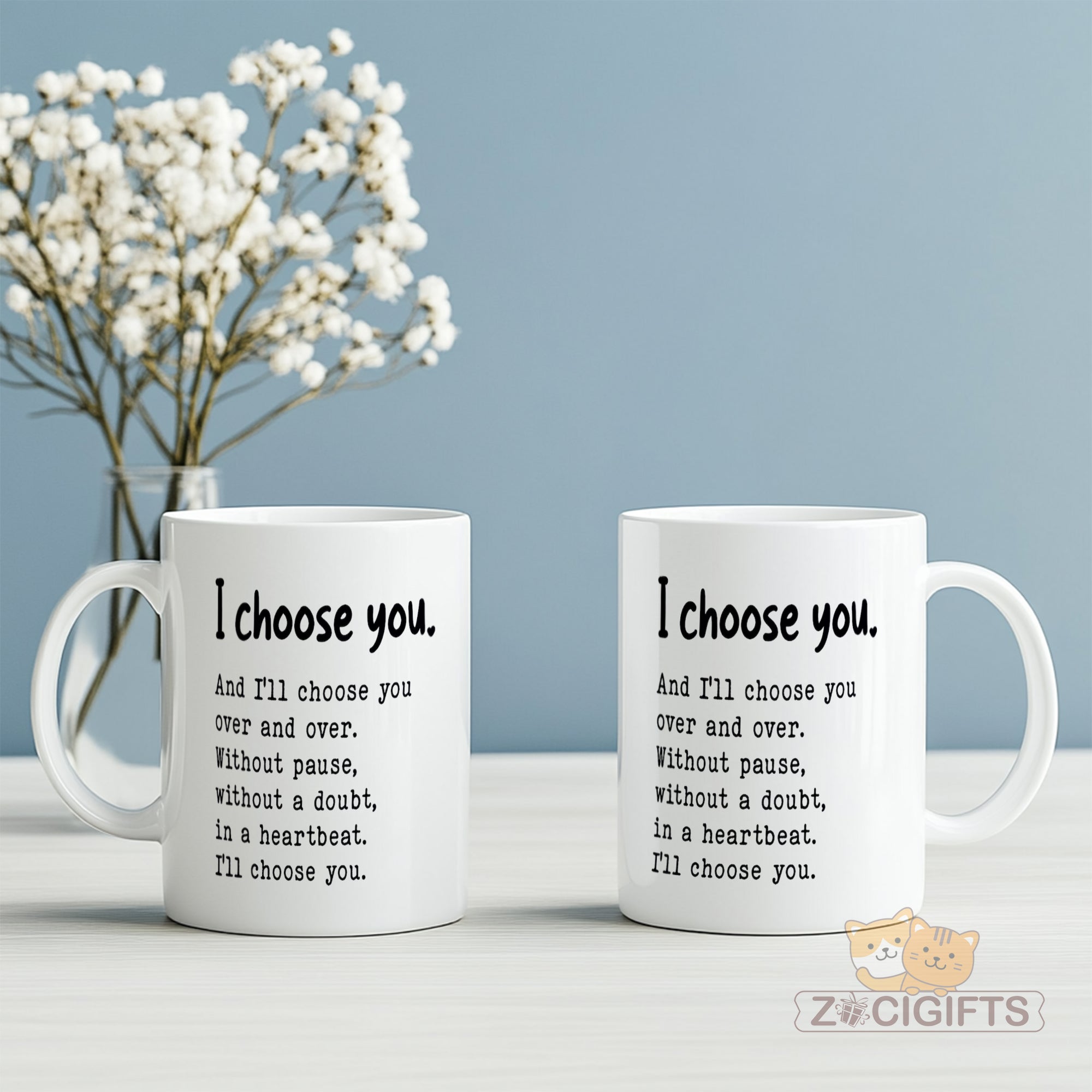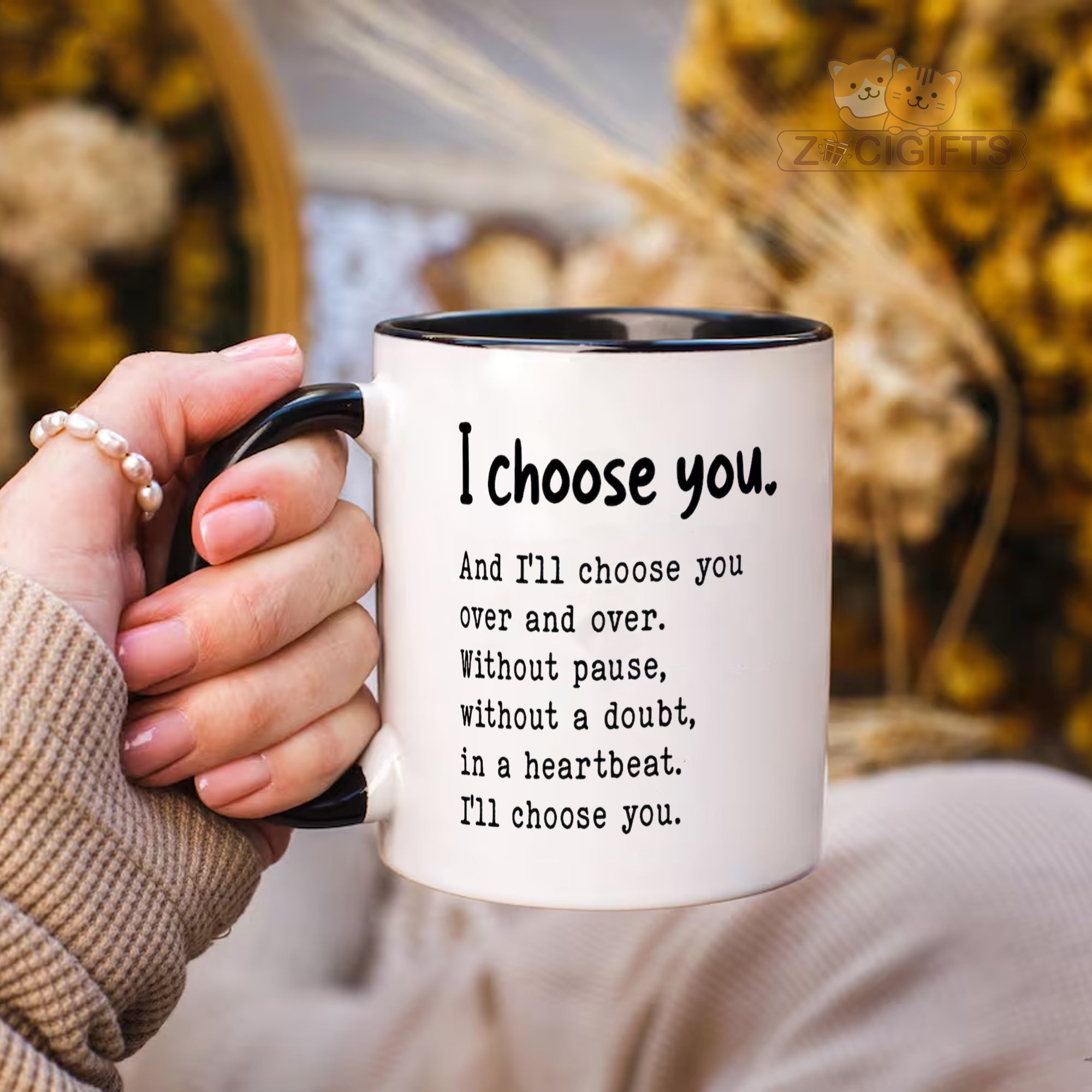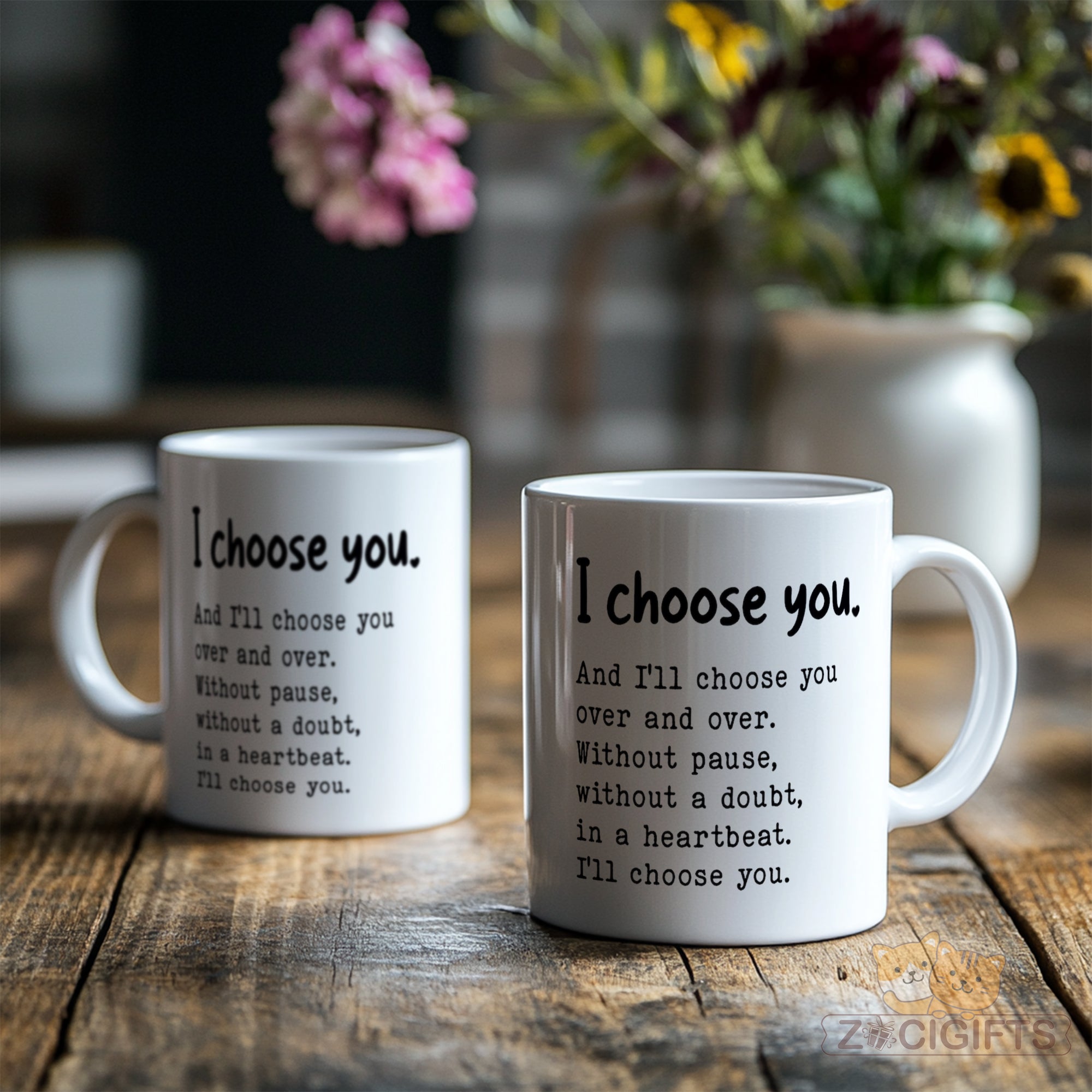 Express your timeless love with our "I Choose You" ceramic mug ¨C a heartfelt gift that speaks volumes! This beautifully designed 11oz (or similar size) reusable coffee cup features an uplifting quote: *"I choose you. And I¡¯ll choose you over and over. Without pause, without a doubt, in a heartbeat. I¡¯ll choose you."* Perfect for couples, best friends, or anyone special in your life, it¡¯s ideal for birthdays, anniversaries, or simply showing appreciation.