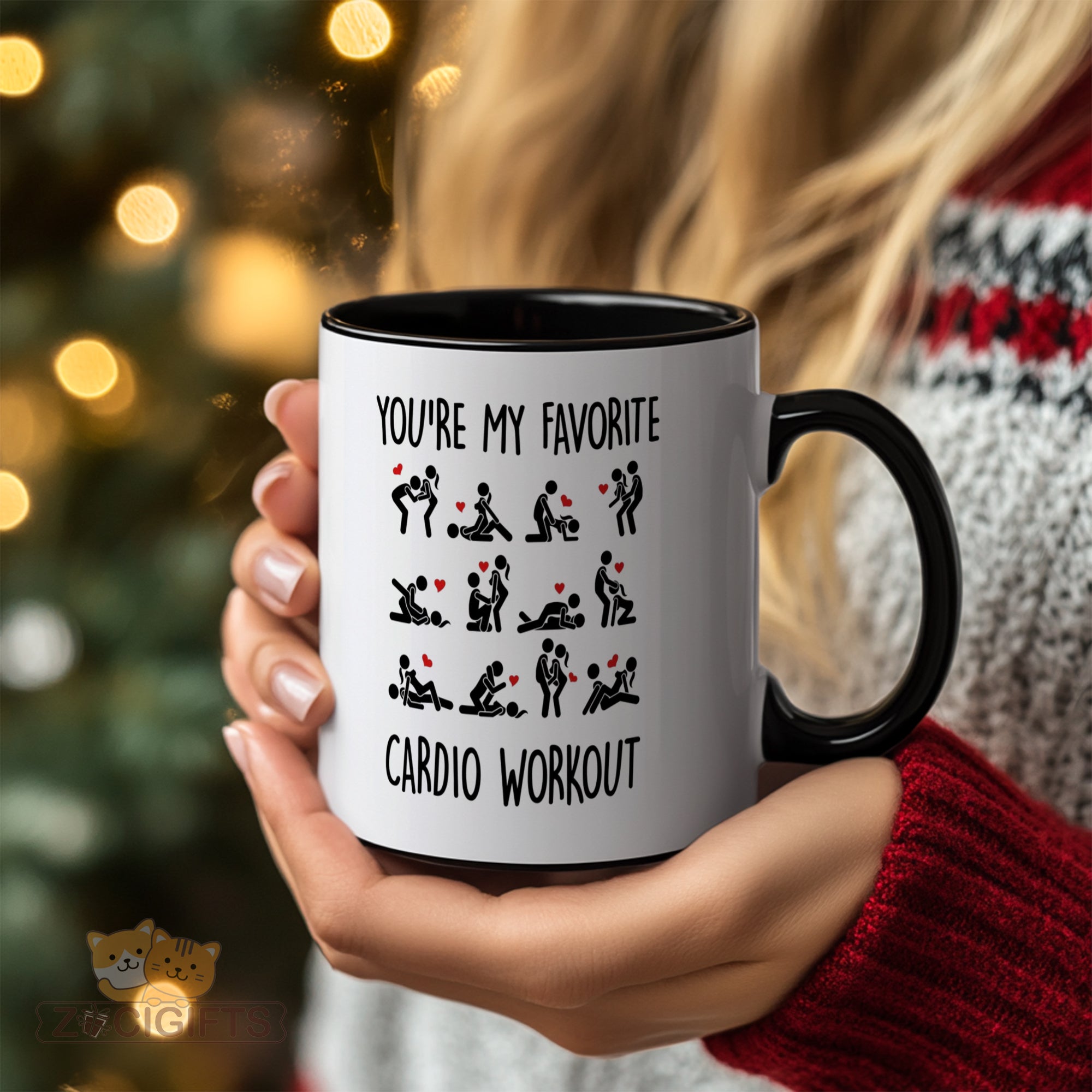 Celebrate the most fun and exhilarating “workout” of all – being in love! This charming mug boldly declares "You're My Favorite Cardio Workout", paired with playful silhouette illustrations of couples in adorable, loving poses. It’s a witty, flirty, and utterly romantic way to tell your partner they make your heart skip a beat.