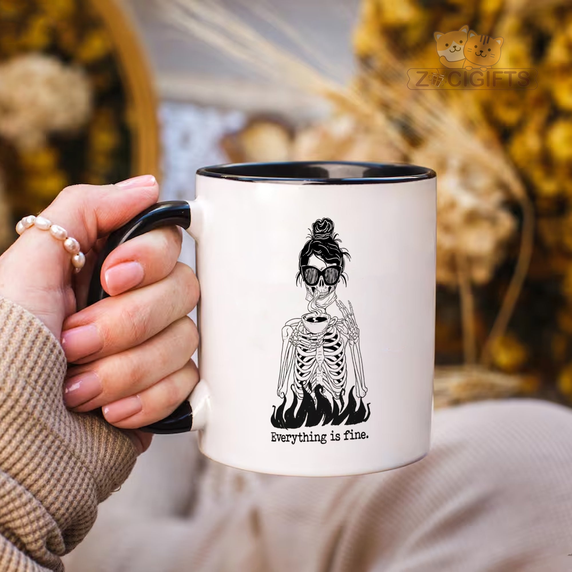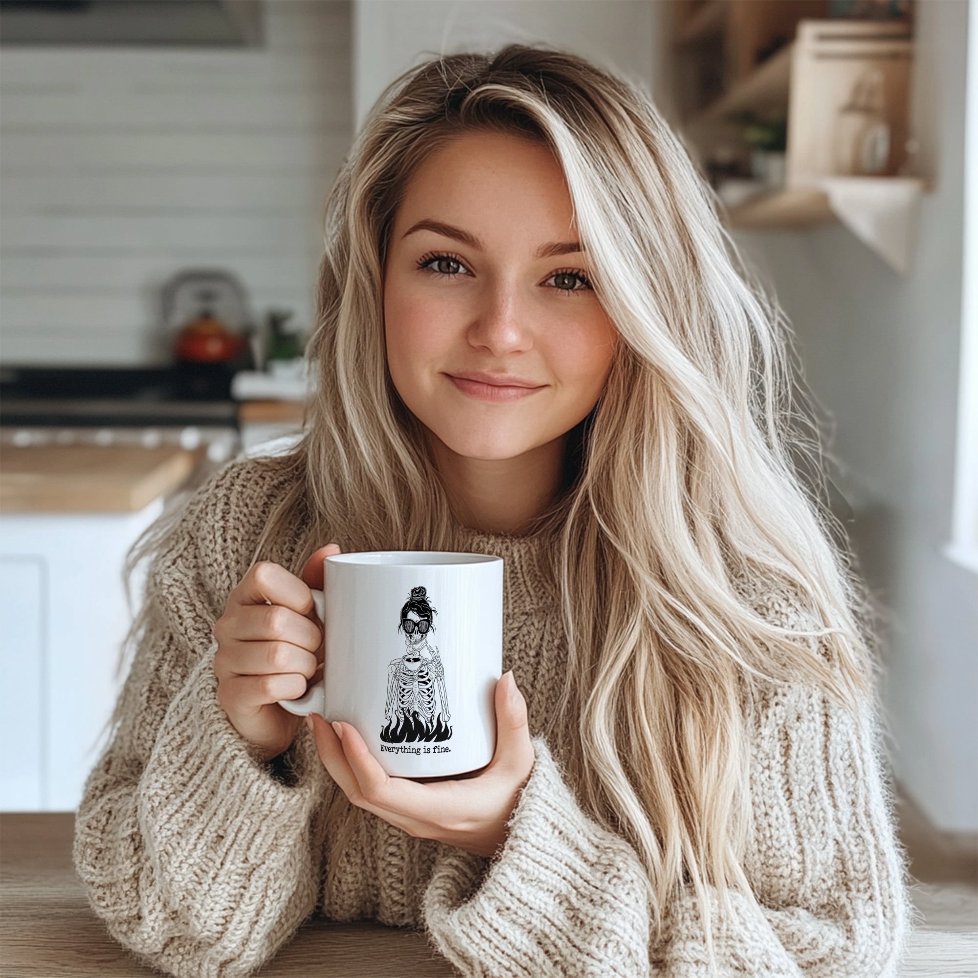 This darkly hilarious skeleton mug is the perfect gift for anyone navigating modern life's chaos. Whether it's work stress, existential dread, or just general adulting fatigue, this mug lets you scream internally while maintaining that perfect "everything is fine" smile.