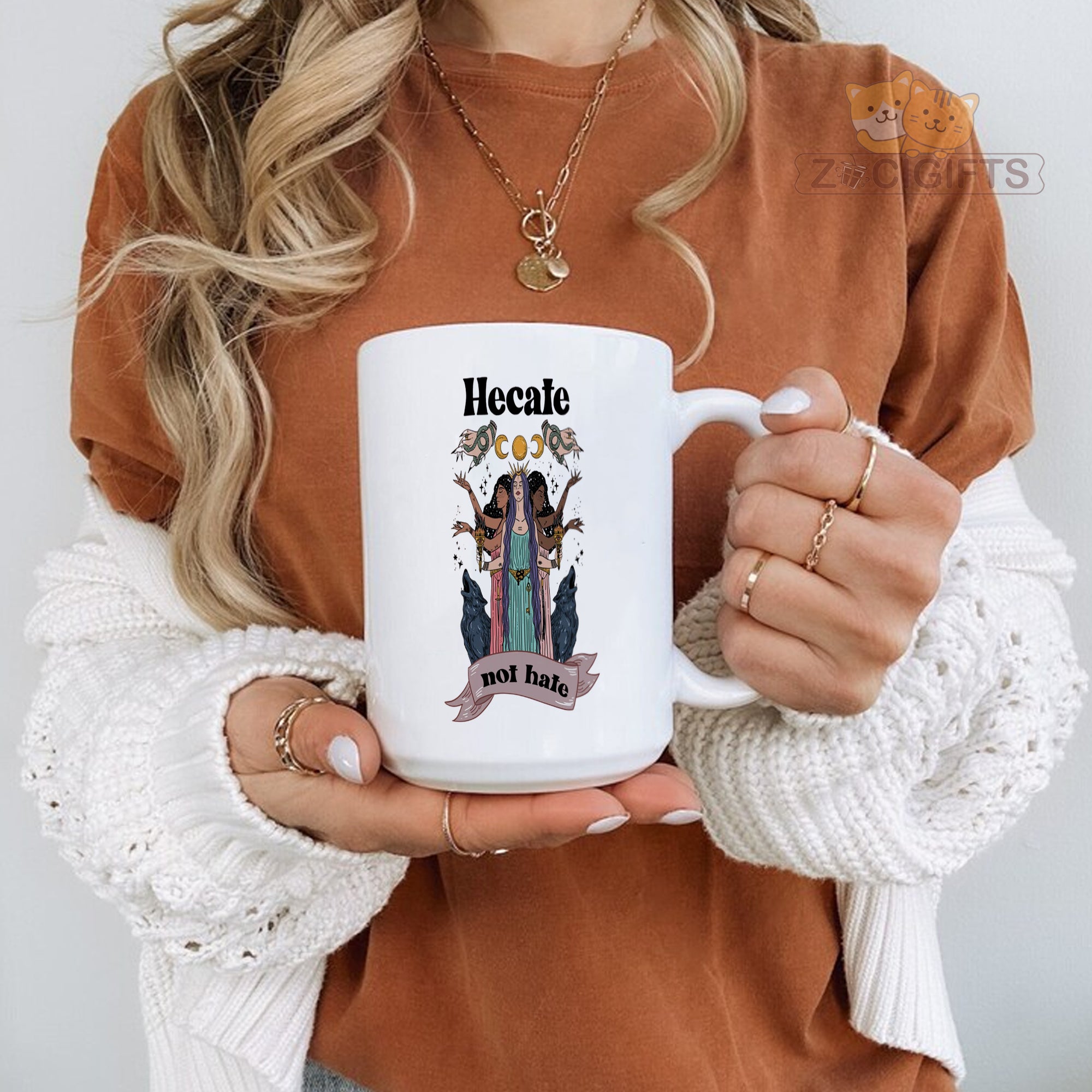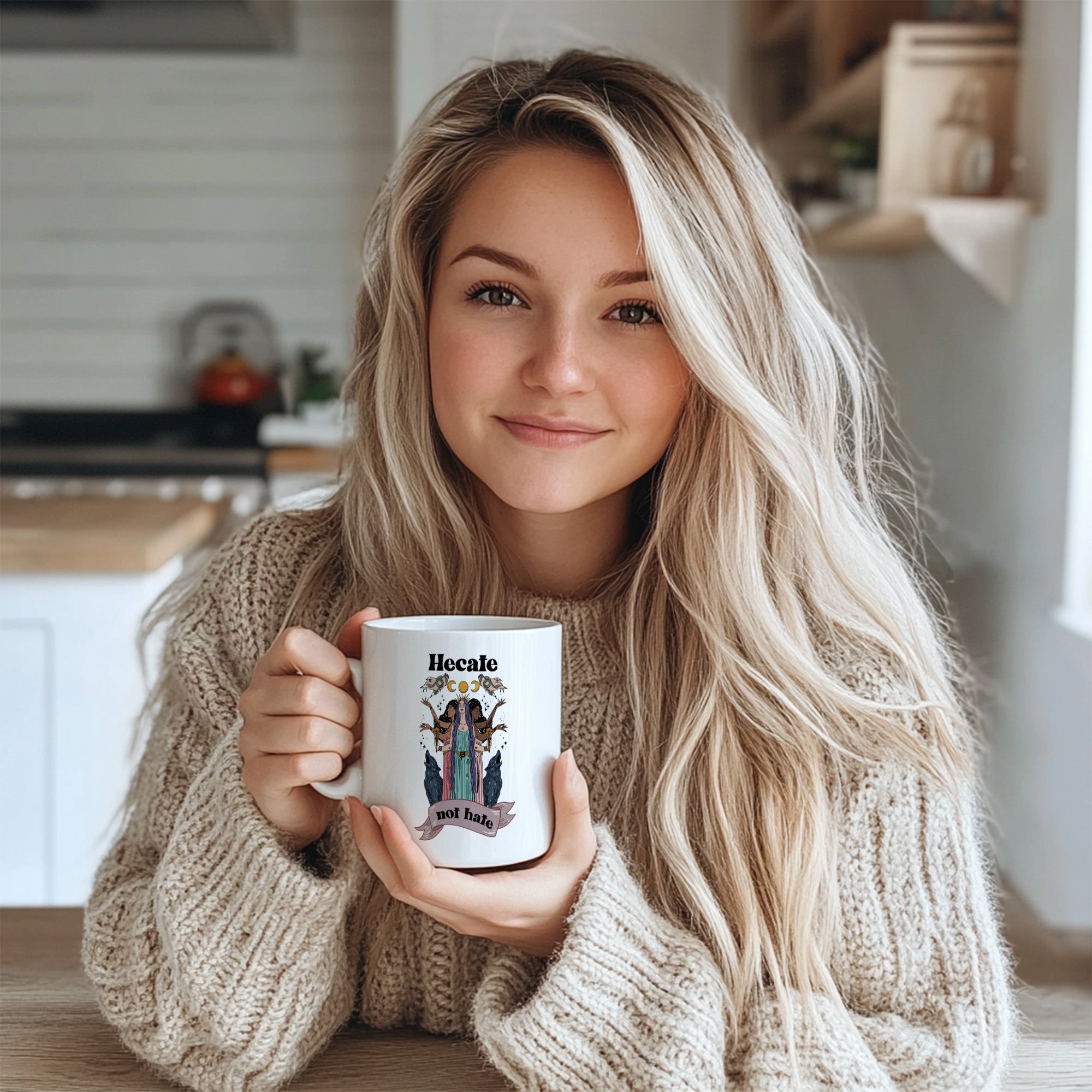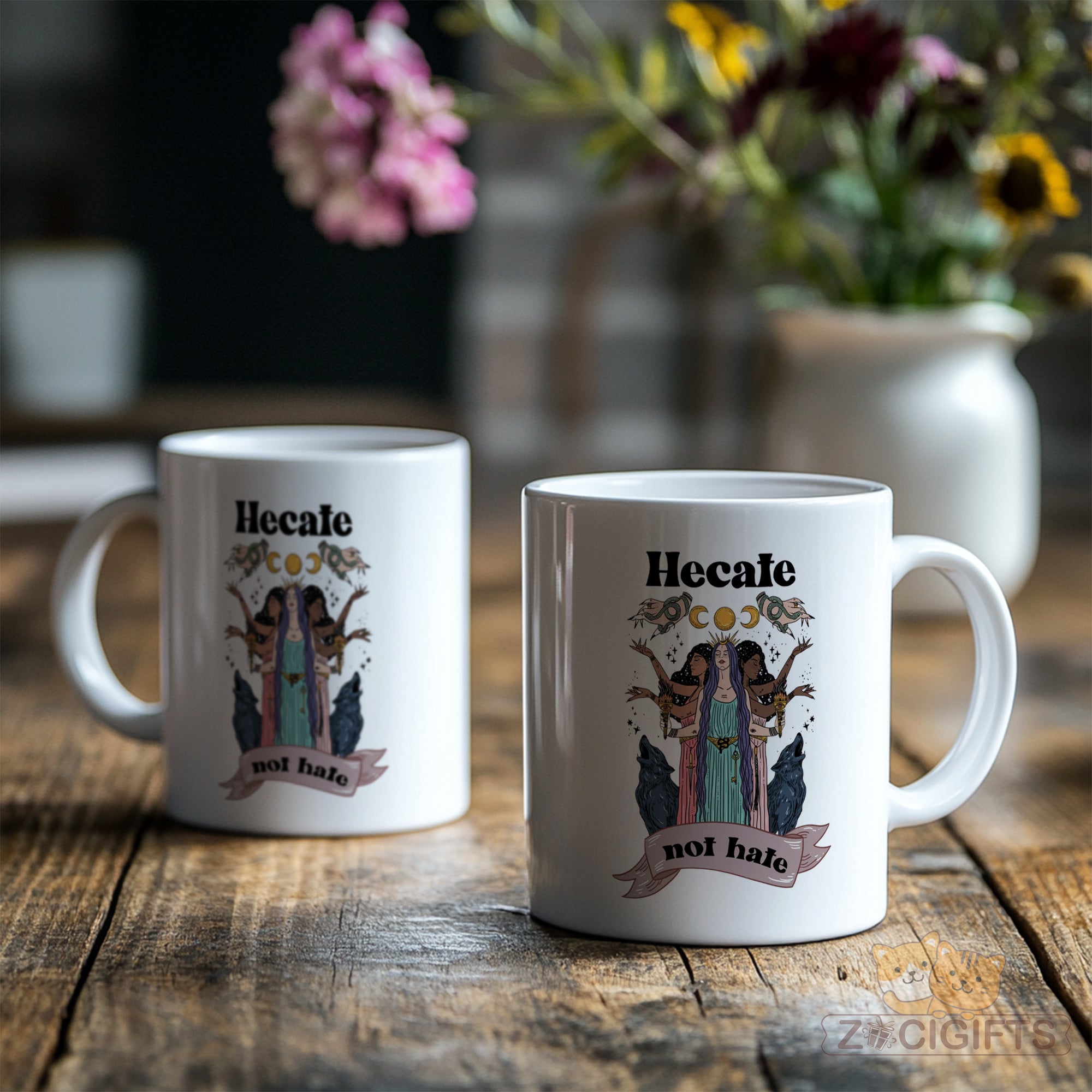 This devotional Hecate mug honors the triple goddess of witchcraft, magic, and crossroads. Featuring authentic Greek iconography, it's perfect for pagan practitioners, Wiccans, and anyone who walks the path between worlds under Hecate's torchlight.