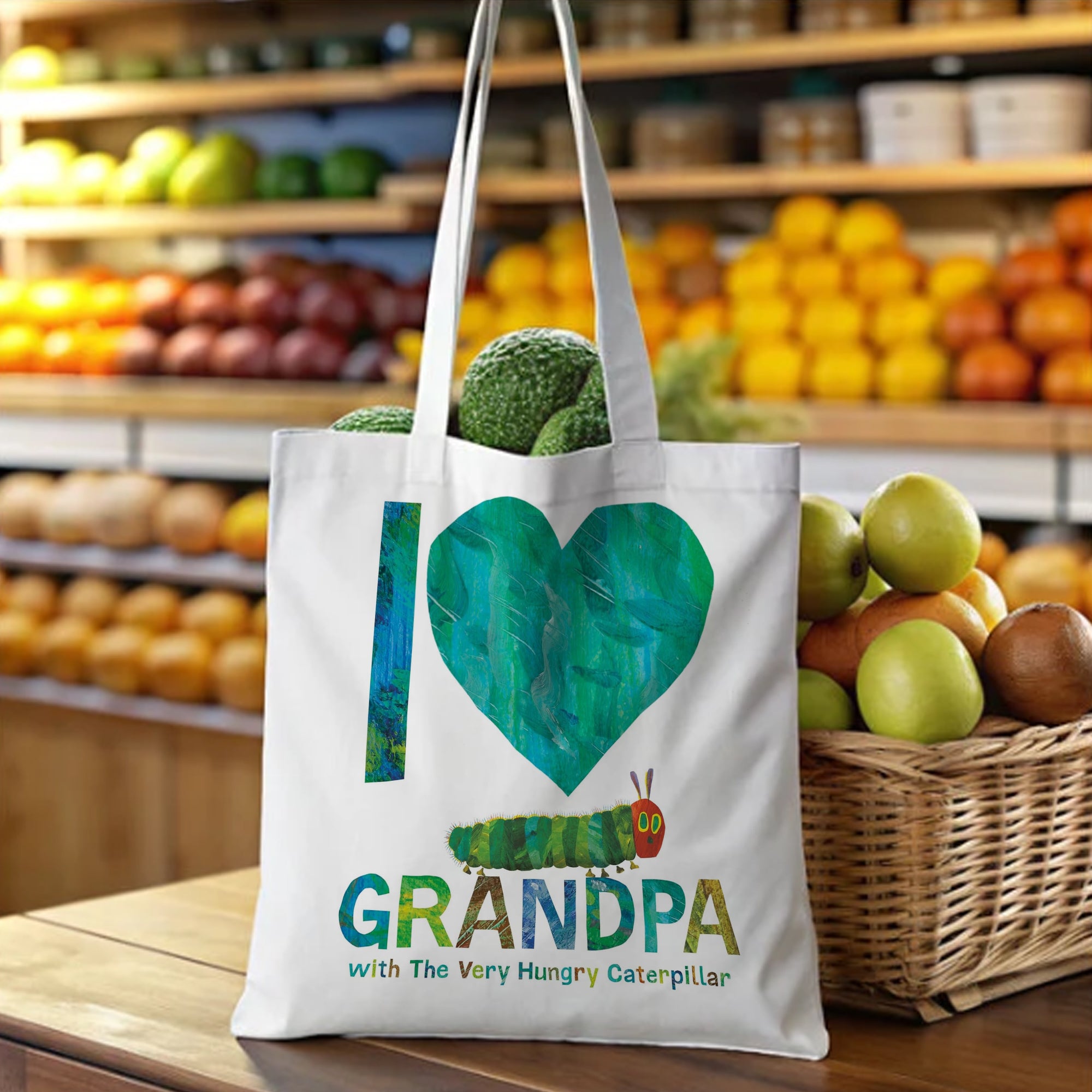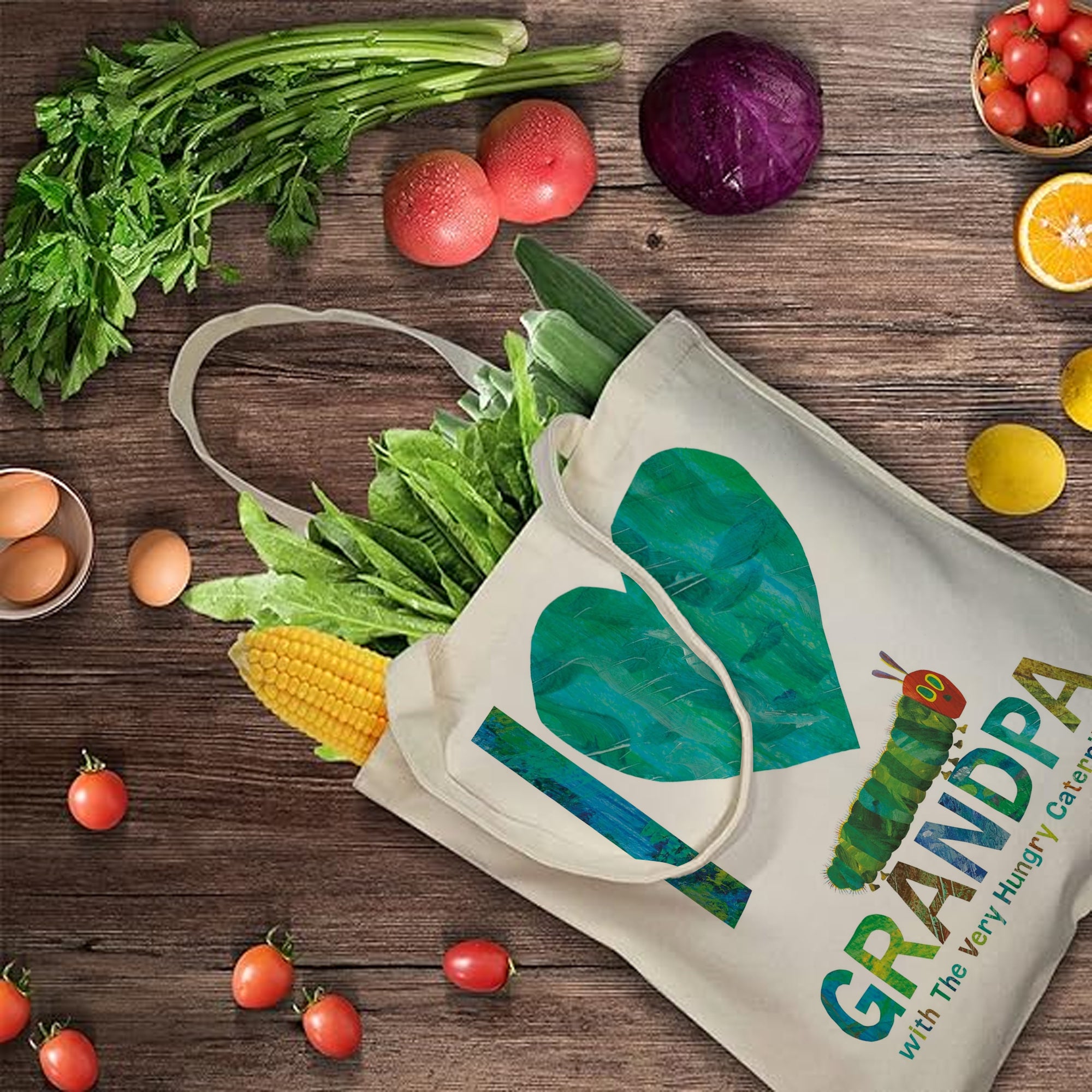 Celebrate the special bond with grandparents through this adorable I Love Grandpa Tote Bag, featuring the beloved artwork from The Very Hungry Caterpillar. Designed as a heartfelt gift, it’s perfect for expressing love on Father’s Day, Mother’s Day, birthdays, Christmas, Thanksgiving, or Valentine’s Day. Whether for grandpa, grandma, parents, friends, partners, colleagues, or a self-treat, this tote combines sentiment with style.