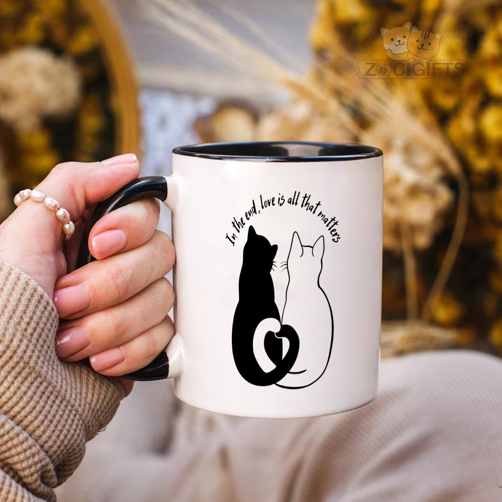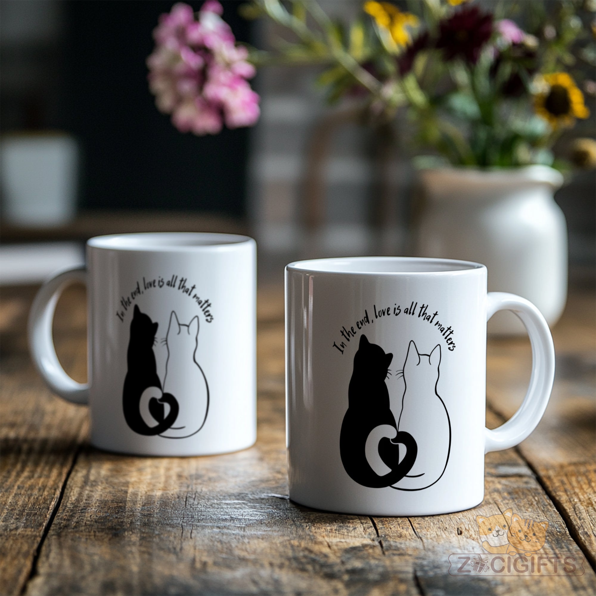 Celebrate the most important thing in life with our heartfelt "Love is All That Matters" Mug. Featuring a delicate silhouette of two cats whose tails form a perfect heart, this mug is a daily reminder of love's enduring power. More than just a cup, it's a tangible expression of care, perfect for any moment you want to show someone they're cherished.