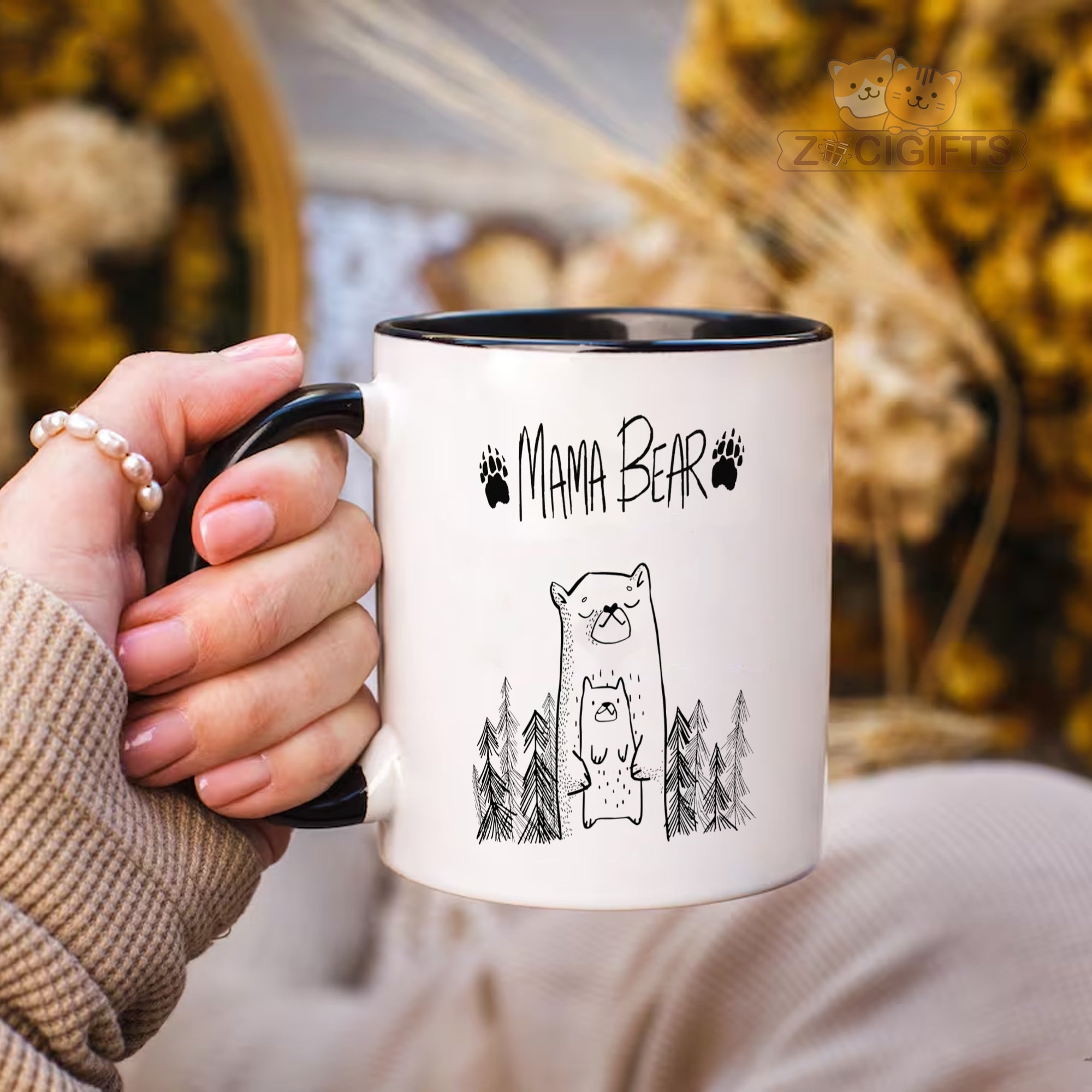 Honor the incredible mother figure in your life with this heartwarming and beautifully designed MAMA BEAR Mug. Featuring the bold, loving declaration “MAMA BEAR” flanked by gentle bear paw prints and a charming illustration of a mama bear with her cub amidst serene pine trees, this mug perfectly captures the strength, warmth, and protective love of motherhood.